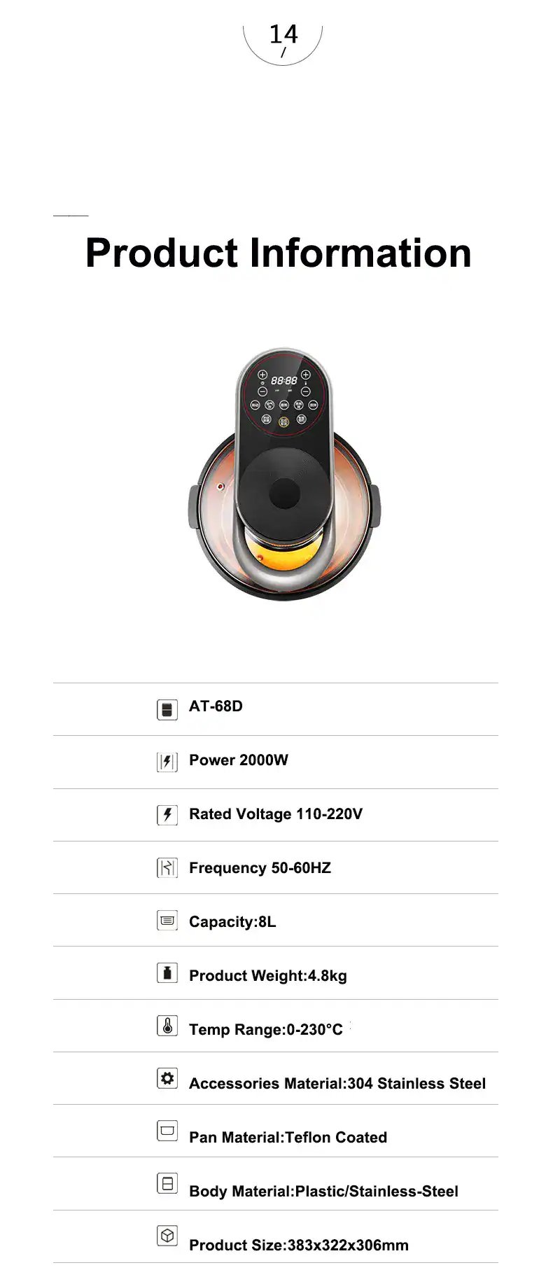 - Large 8L Capacity: Perfect for families, meal prep, or entertaining guests.