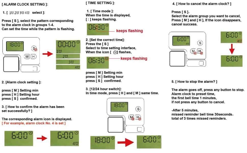 ★ Step 3: Press “H” to set the hour, “M” to set the minute, and “S” to confirm.