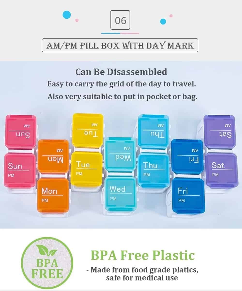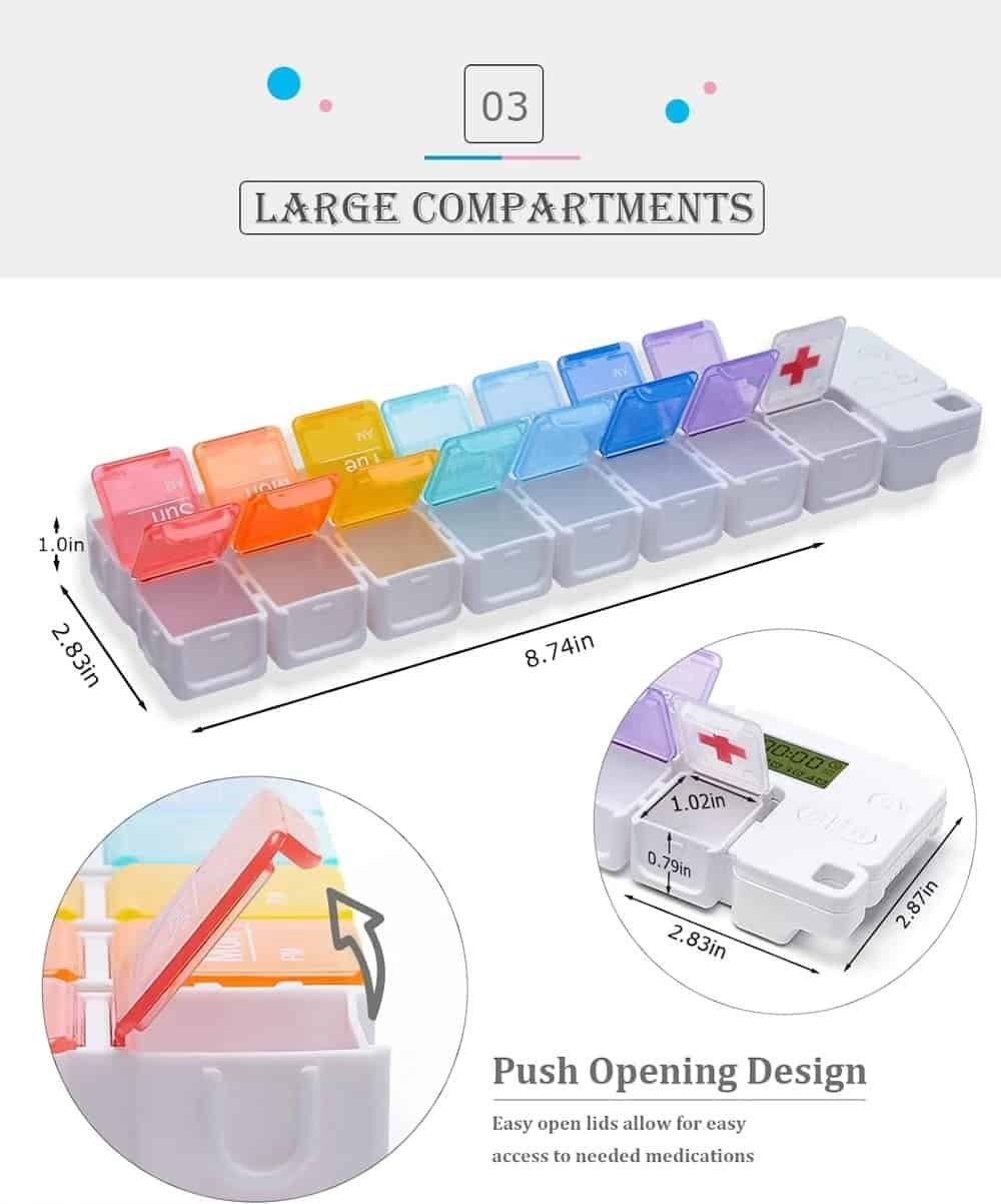 - 14 compartments for a full week of AM/PM planning