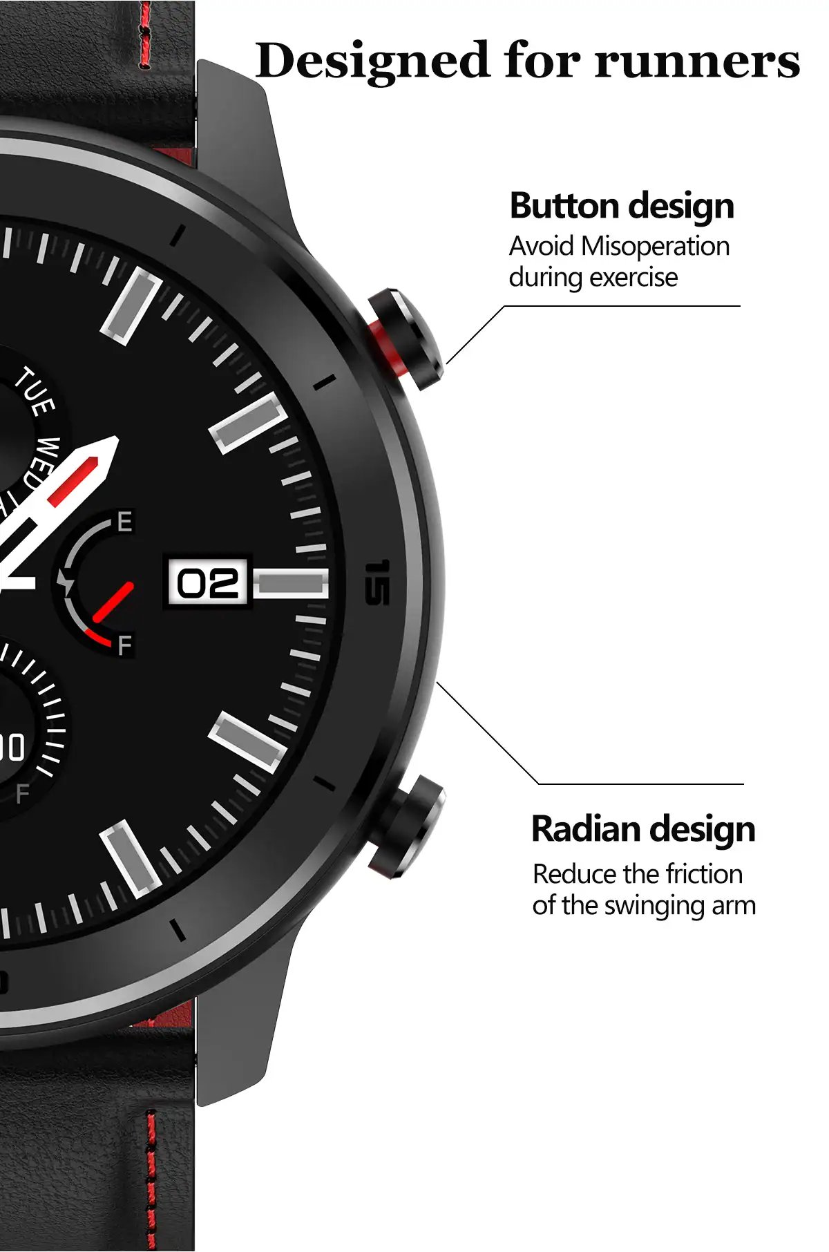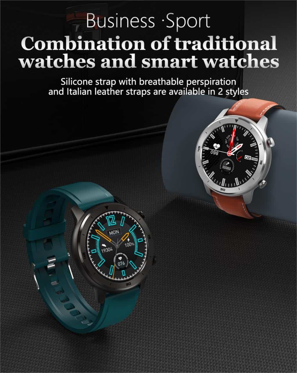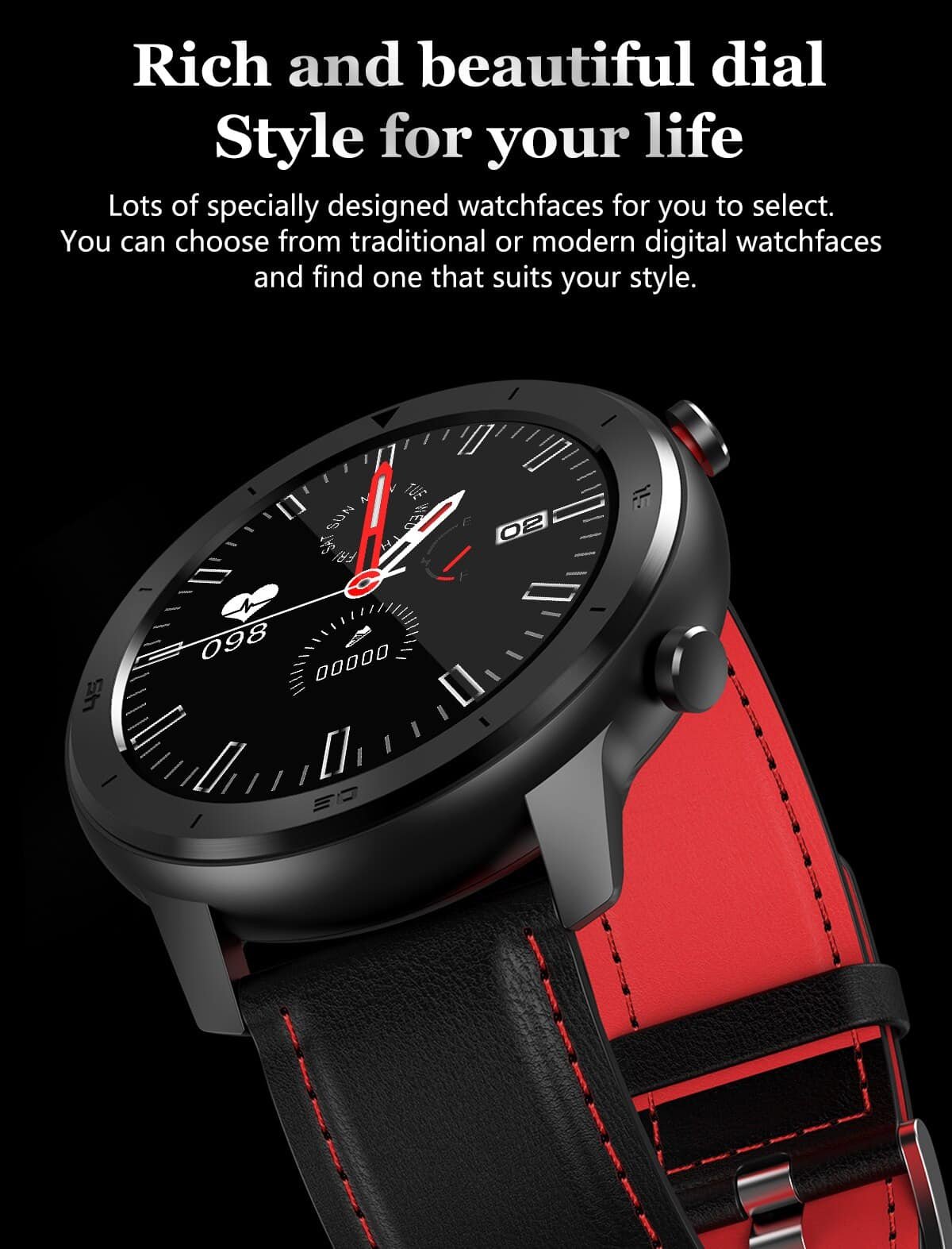 More than a fashion watch, own a watch that is both stylish and convenient with our GDX trendy smart watch. This updated GDX 2021 is a sporty smartwatch with a classy design. It has a full round shape with two physical buttons on the side. The body is made of zinc alloy, while the strap is of leather. It is a waterproof smartwatch; you can wear it when you are washing your hands or on rainy days. This smartwatch also additional features: a heart rate monitor, blood pressure monitor, blood oxygen monitor, sleep monitor, pedometer, weather. In particular, its battery capacity is also very large; you can use it for 10 days with just 1.5/2 h of charging time. Buy right now!