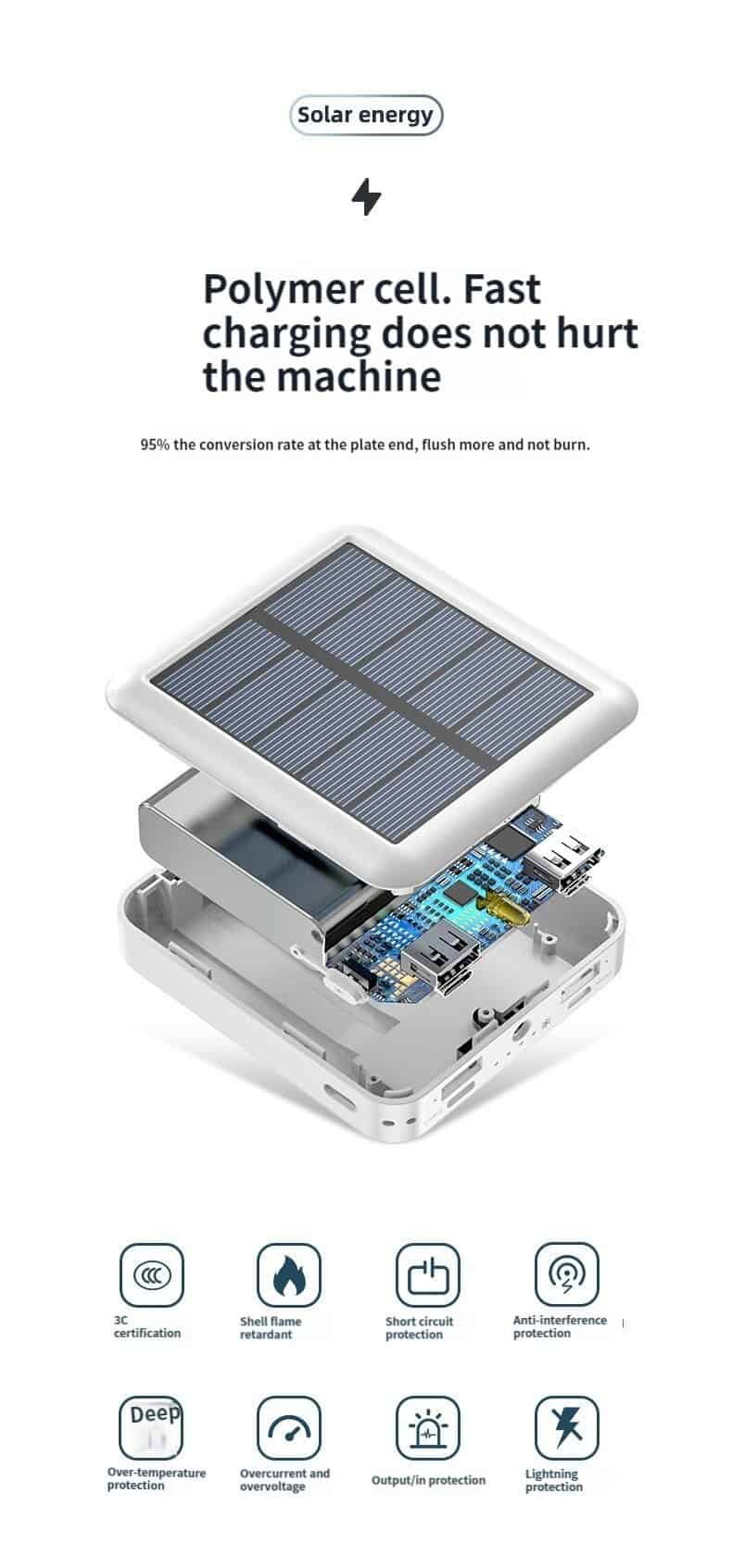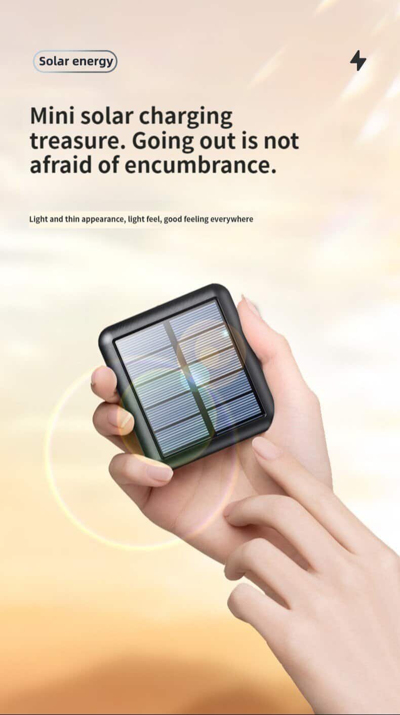 One of the smallest and lightest solar power bank. only 3.64*3.07*1.02inch, it’s easy to put in your pocket or bag, lanyard design is easy to carry.