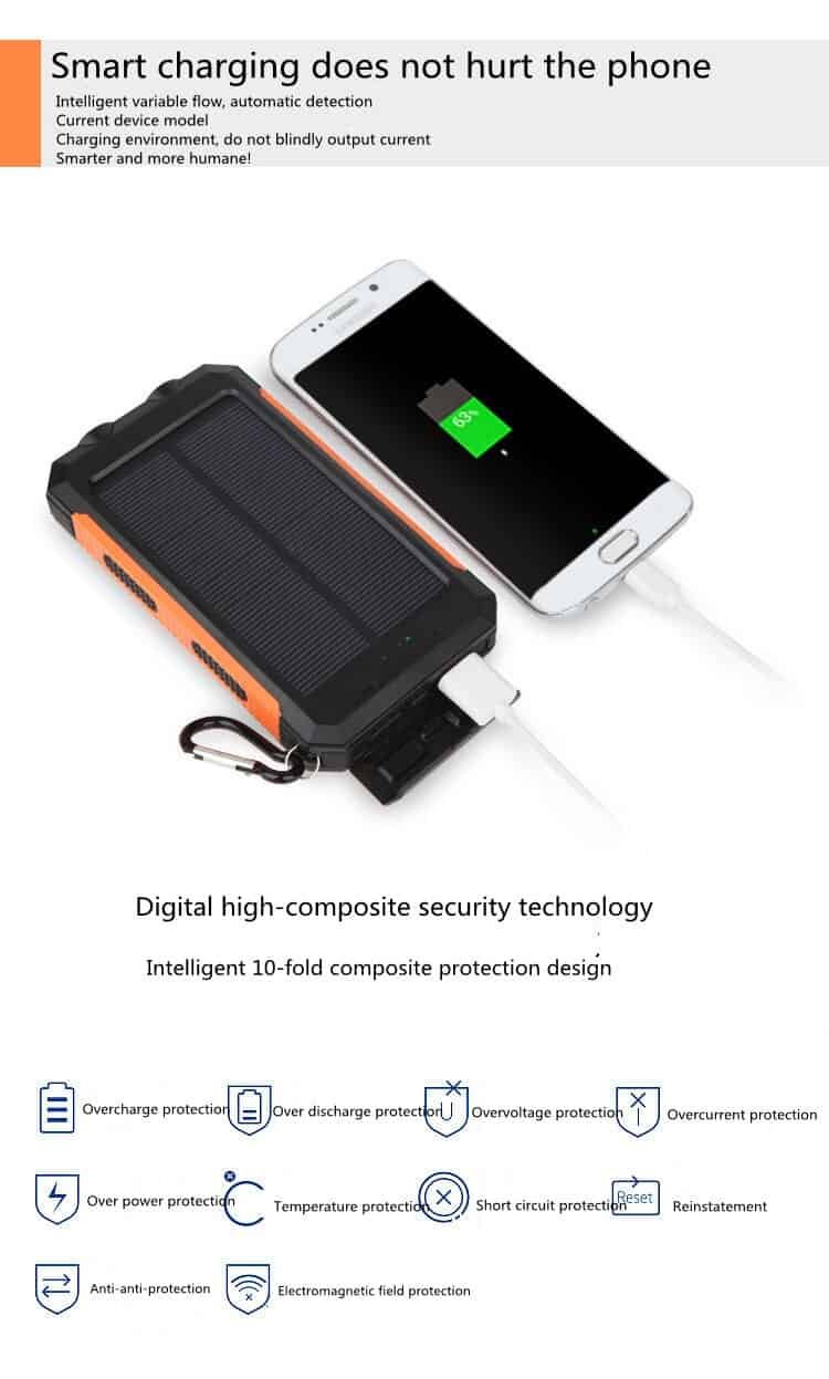 For a person who often has to use the phone, the indispensable thing to carry with you is a backup charger. More than ordinary power banks, our Solar power bank is more convenient. This is a military-grade emergency solar power bank with 10,000 mah and only takes 0.5h to fully charge. It can be used for up to one month when it is fully charged. Moreover, as the name implies, this power bank is not only fully charged with a regular charging cable, but can also receive energy from the sun. Even if you go exploring in a local area without electricity for many days, you do not need to worry about running out of power. Very handy to carry around for outgoing, business, or travel without adding too much weight. Get it now!