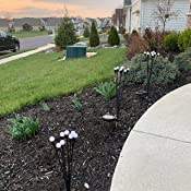 These lights are really beautiful and very elegant looking in my front yard it charges up really well in sun and gives a very bright light at night time i had bought similar lights from somewhere else and it wasn't as good as this.These were used to line my garden.They appear attractive and emit a pleasant,warm glow.The metal and nice,lengthy stakes are fantastic.Both a solid light and a flickering light setting are available.These work well for us because they receive practically all of the day's sun in my garden.
