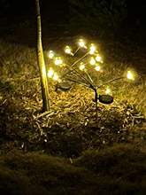 "Best display in bunches,these firefly lights add a touch of whimsy and class to you existing landscaping.The excellent yet small solar poanel does a fantastic job gathering energy and storing it to provide a full 6 to 8 hours of illumination over nightime hours.Simply unpack,attach the pointed stake and stick it in the ground.Thsats all it takes.5 stars.Excellent and truly lovely lights."