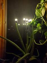 they are nice and bright.I was able to put them around my pool Flowerbed area as well as my outside Flowerbed area.They're very unique and they are wacky looking but also decorative and really cool at night.The strings pretty much go wild in all directions and I really love that.The amount of light you get off of these is great as well and the battery is a great quality battery because it holds a charge for quite a long time.I would say that these are definitely a statement piece and I think they are amazing.