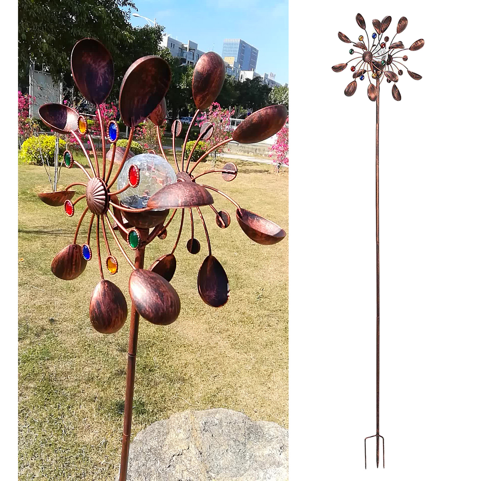 CHANGING COLOR DISPLAY– Built to withstand, the solid ground stake and wind blades of our metal wind spinners come with a bronze brushed coat finish. the crackle glass ball sits between two tiers of gracefully spinning wind blades, offering a stunning display of BRONZE