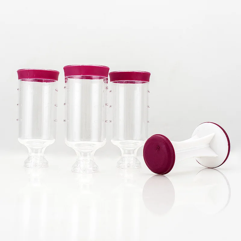 -To use it, start by preparing the squeeze station by inserting the pouches into their designated areas on the station, then twist the filling tubes onto the top of the station connecting them to each designated pouch below them.