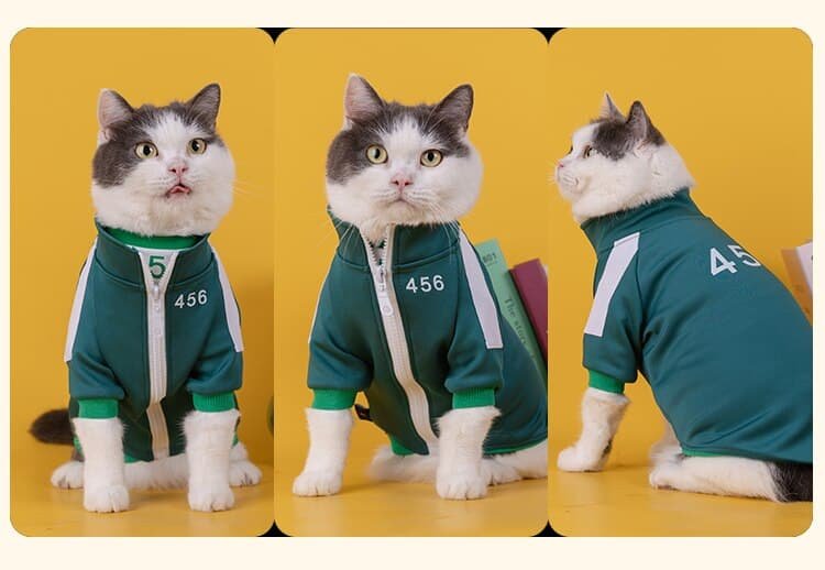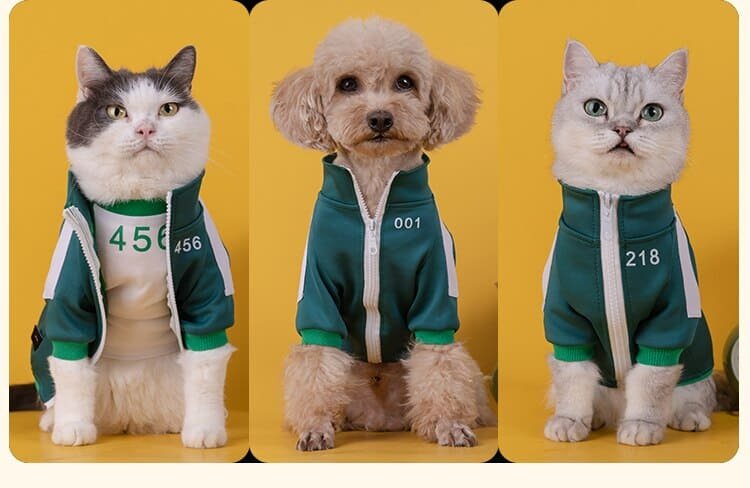 Dress up with your pet up for Halloween from the trendiest show, Squid Game! Squid Game pet costume: let your pet wear clothes to join this guard uniform, let your pet play your favorite character, and bring joy every day. This costume is made of high-quality, durable cotton with exquisite craftsmanship, exquisite design, and clear and beautiful colors, suitable for most pet dogs and cats. Perfect for Halloween, pet role-playing, Christmas, Easter, theme parties, etc. This Squid Guard uniform pet costume is a good choice for your dog. Use this realistic costume to create your pet’s unique style and make your pet unique, suitable for winter or autumn. Keep your pet warm and comfortable in any outdoor activities! Buy now!