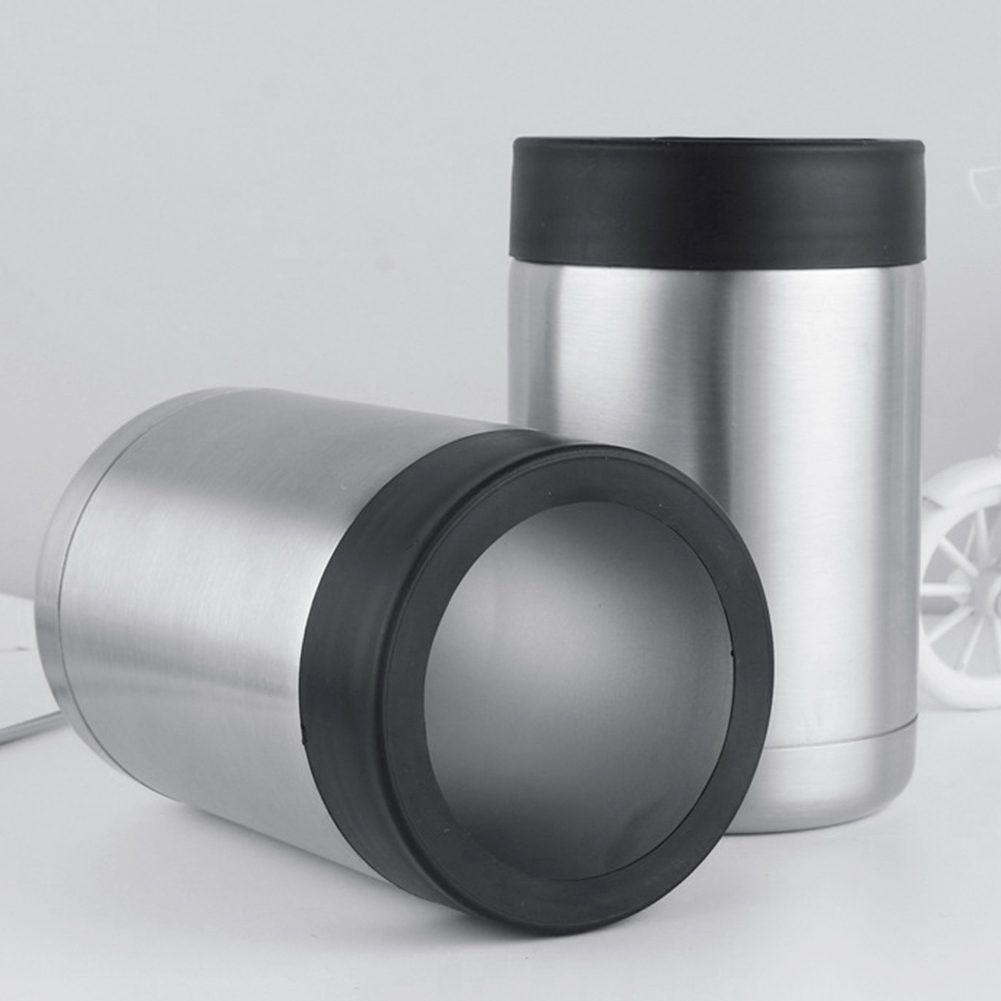 This attractive, high-quality stainless steel can and bottle insulator comes with double interior walls that ensure its contents remain fresh for hours while its condensation-free design will keep your hands dry. No slippage or getting your clothes or surroundings wet.