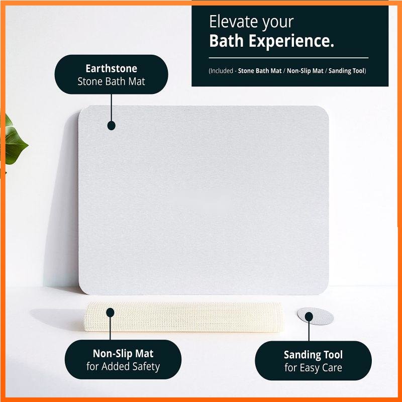 EASY TO CARE FOR & STAYS CLEANER LONGER: The Earthstone Stone Bath Mat is crafted from naturally durable minerals that last and require minimal effort to maintain. Simply wipe away stains with a damp cloth or the sanding tool included. Over time you can restore and even improve the absorbency of your Earthstone Stone Bath Mat by lightly sanding the top surface. Say Hello to the last bath mat you’ll ever need.