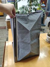 Bag description corresponds. The material is dense. There is not a very strong chemical smell.