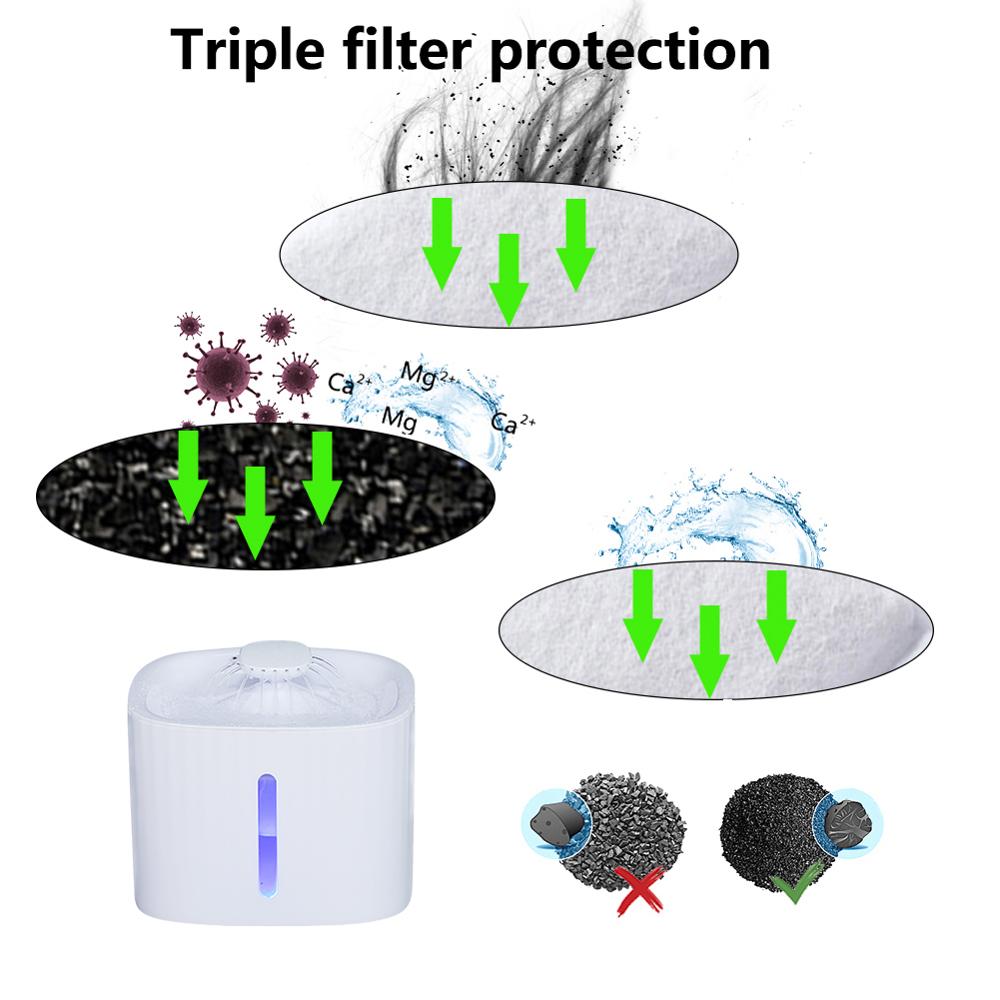 Triple Action Filtration: The triple activated carbon filter keeps the water fresh, odorless and helps prevent urinary tract diseases.