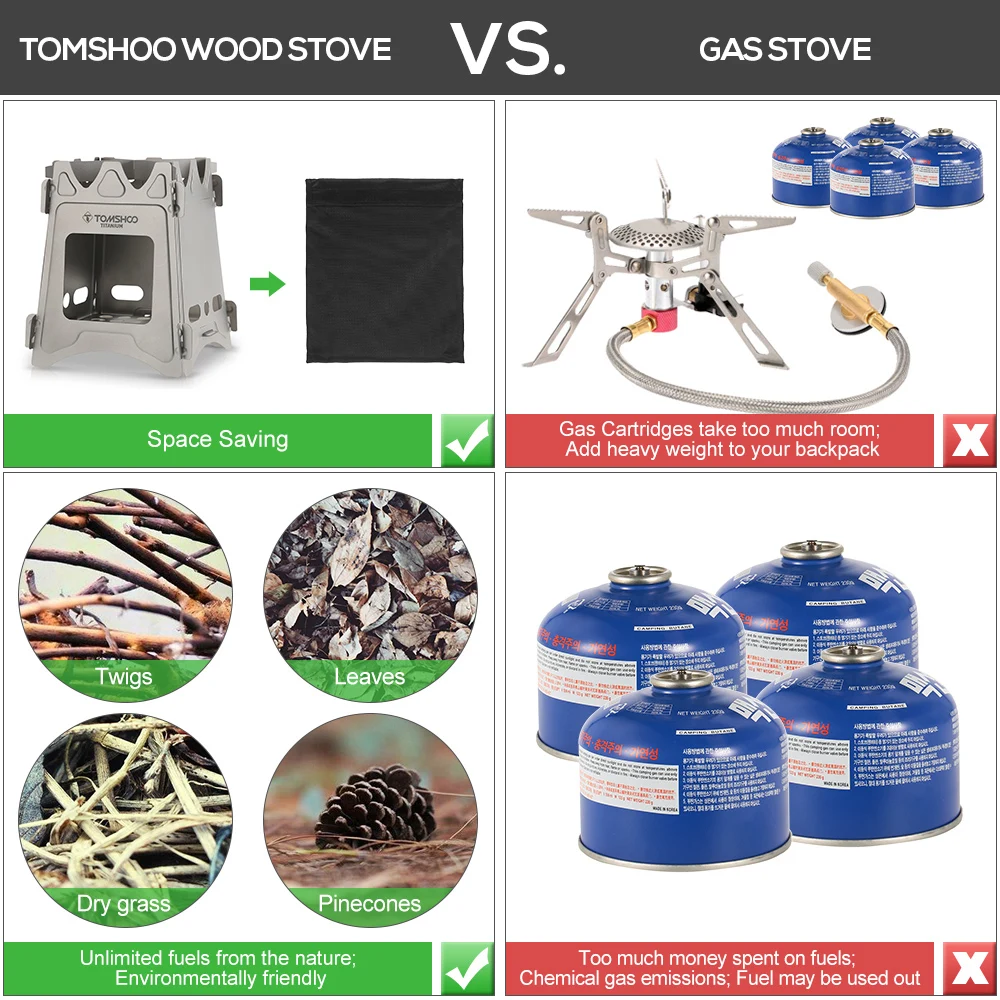 This stove is built with titanium construction that is corrosion-resistant, extremely durable and super light. Connect all panels together by each side which will just take seconds to complete. Cook a meal with easy-to-find, unlimited fuels like wood, twigs, branches, leaves and paper to cook a meal wherever you set up your camp, no chemical emissions, no carbon footprint. Fold the stove flat and stuff it in a pocket or backpack to start low-carbon travel.