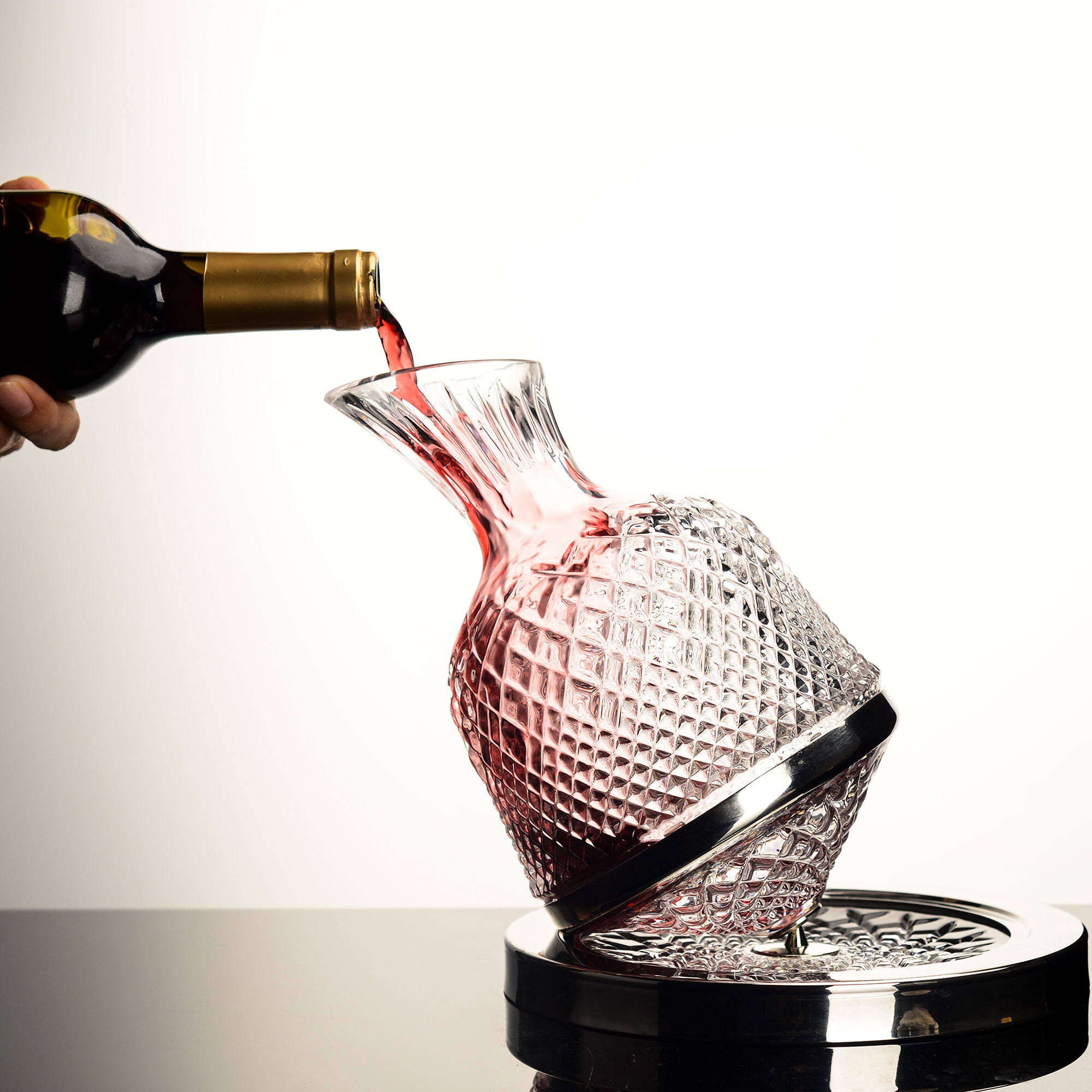 Enjoy your wine, impress your friends with our Top shelf spinning decanter! This Aomori crystal decanter can be rotated around the center on its carved base. A truly unique design ensures your decanter will spin smoothly for years to come. The cutting-edge design will blow you away every time you spin it. And spin it you will – you won’t be able to stop. This lead-free crystal decanter lets you aerate your wine to allow the flavors to develop. Or it is a great flex for top-shelf spirits… A beautiful gift for those hard to buy for people, the best present for your mom, dad, partner, mistress, or friends. Get it now!