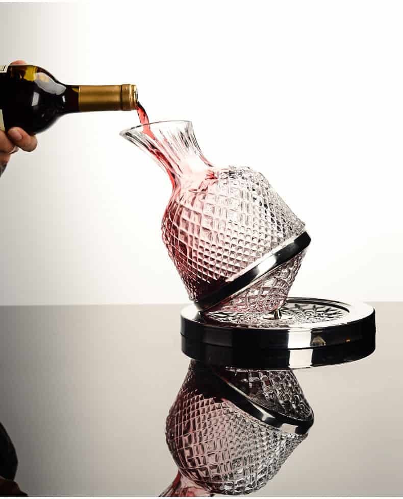 Enjoy your wine, impress your friends with our Top shelf spinning decanter! This Aomori crystal decanter can be rotated around the center on its carved base. A truly unique design ensures your decanter will spin smoothly for years to come. The cutting-edge design will blow you away every time you spin it. And spin it you will – you won’t be able to stop. This lead-free crystal decanter lets you aerate your wine to allow the flavors to develop. Or it is a great flex for top-shelf spirits… A beautiful gift for those hard to buy for people, the best present for your mom, dad, partner, mistress, or friends. Get it now!