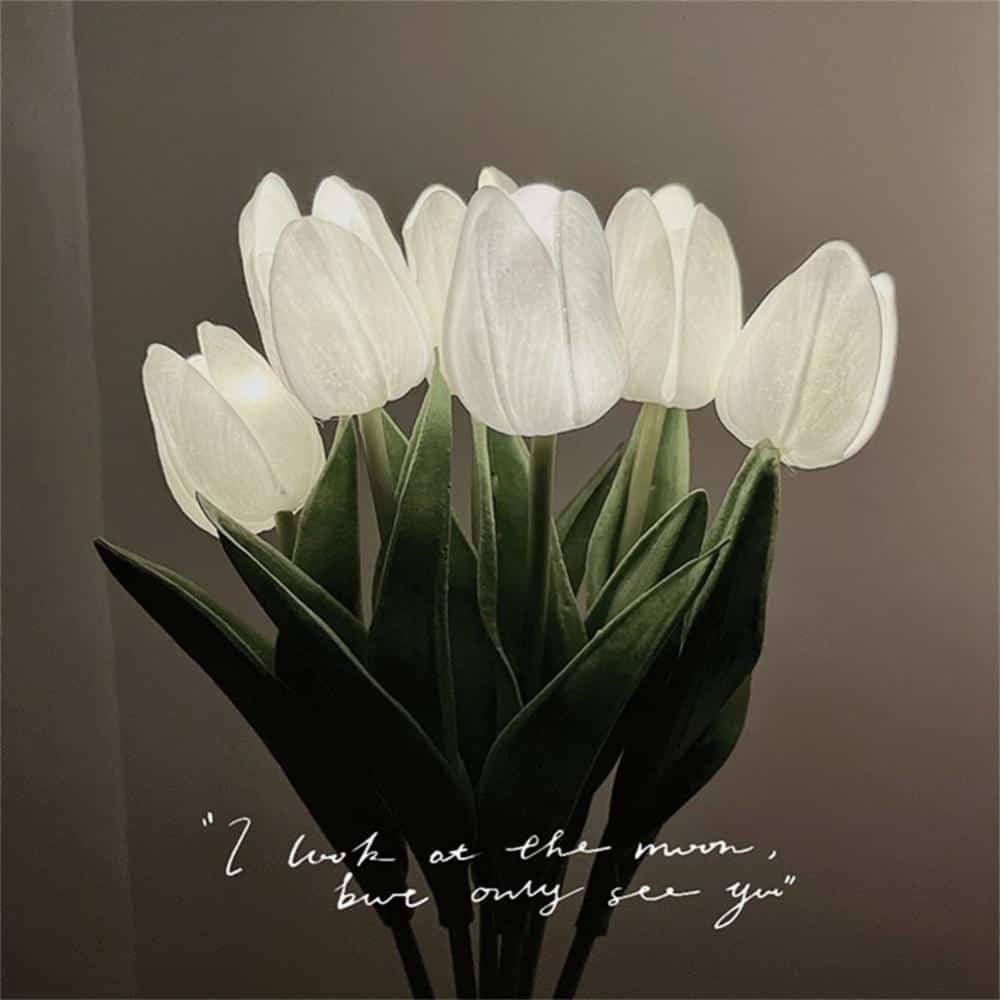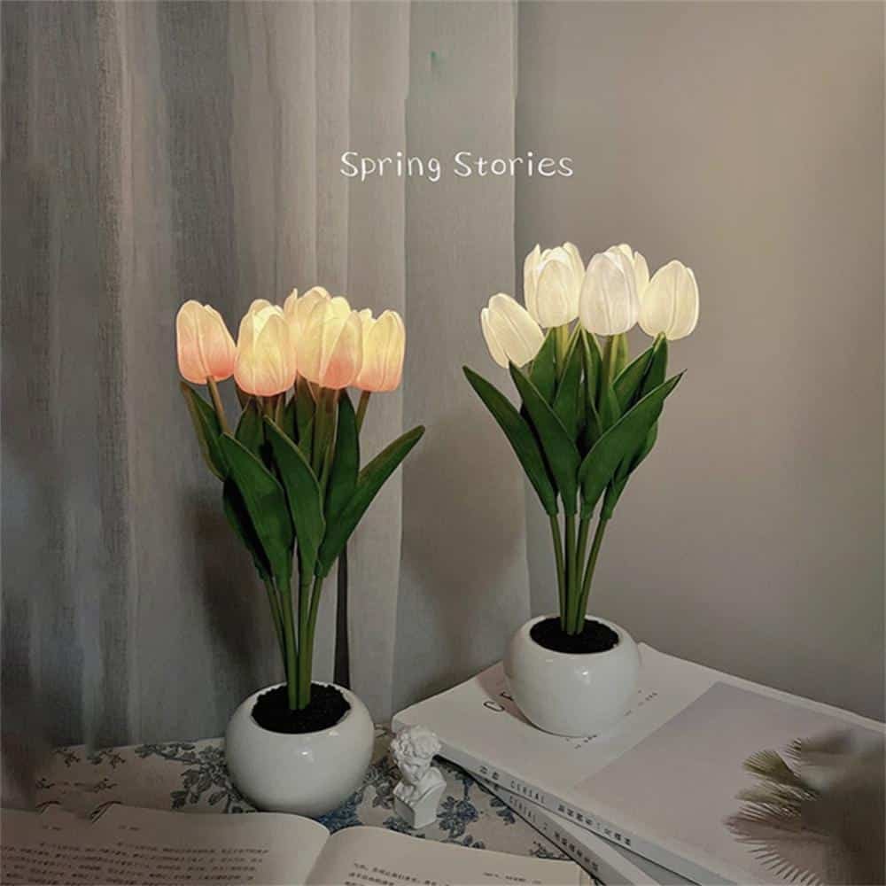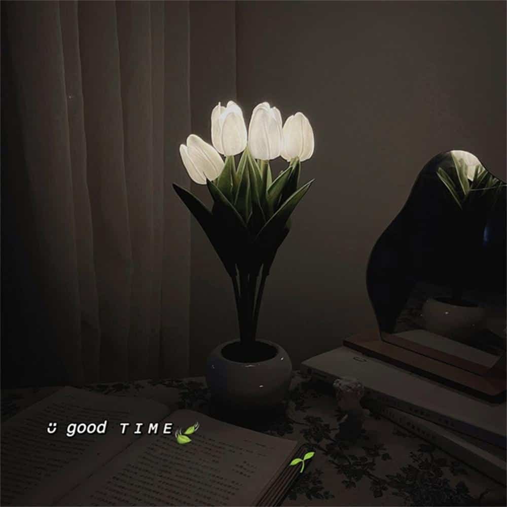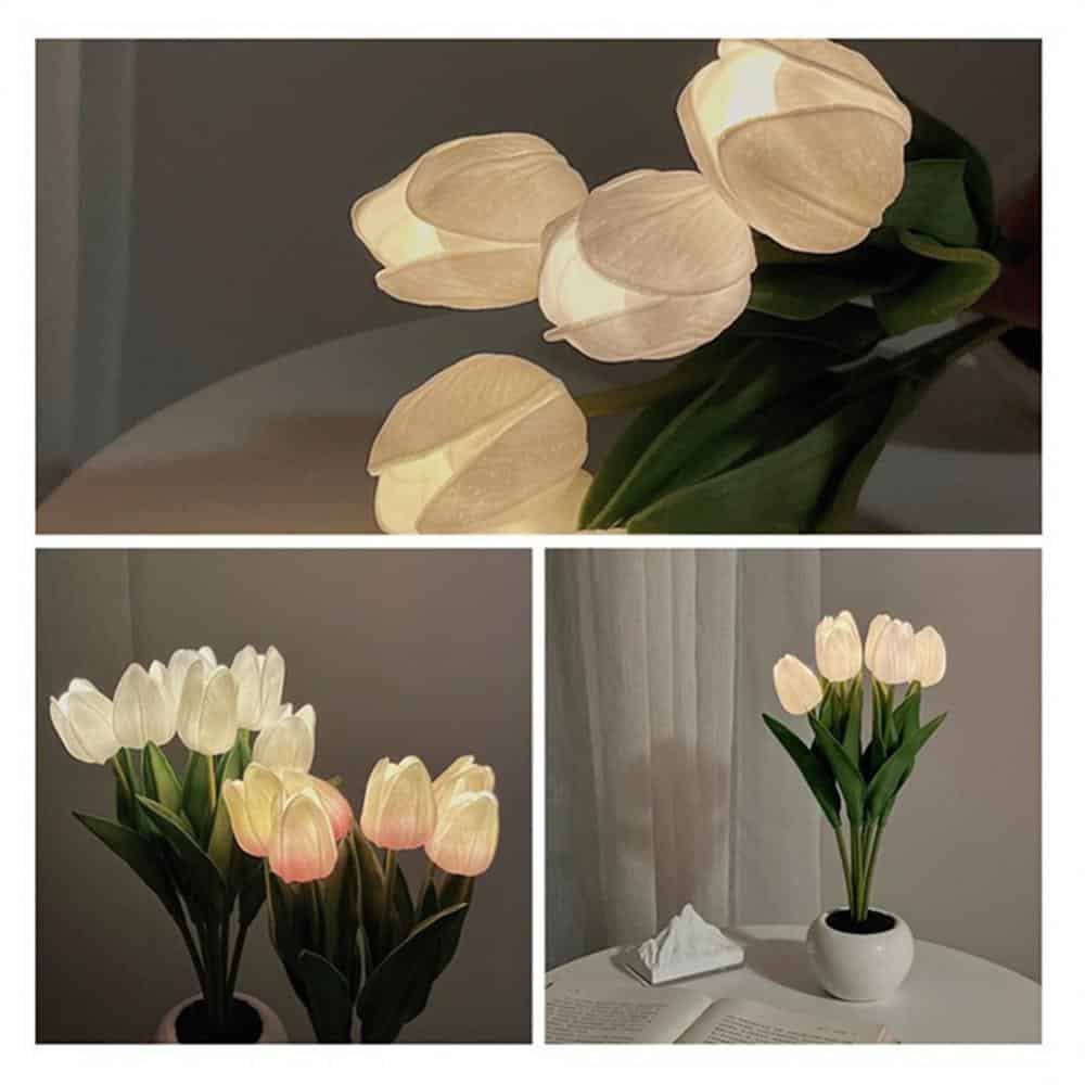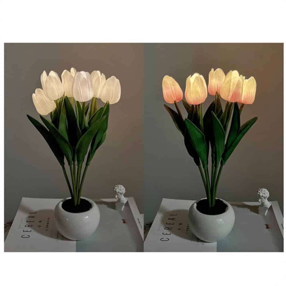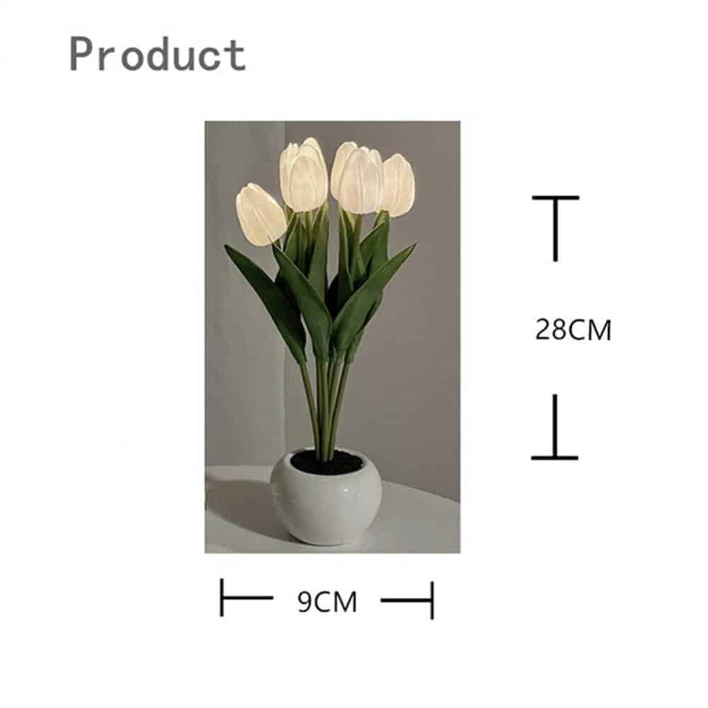 【Features of LED flower bonsai】 The combination of LED solid light source and high-simulation plants, through the unique design, makes the artificial flower landscape have the new function of the light source, and gives the artificial flower new vitality. Our Tulip Lamp is not only an elegant bonsai, with the spirituality and natural flavor of flowers; at night, it is a flower table lamp with soft and comfortable light, adding a warm and romantic color.