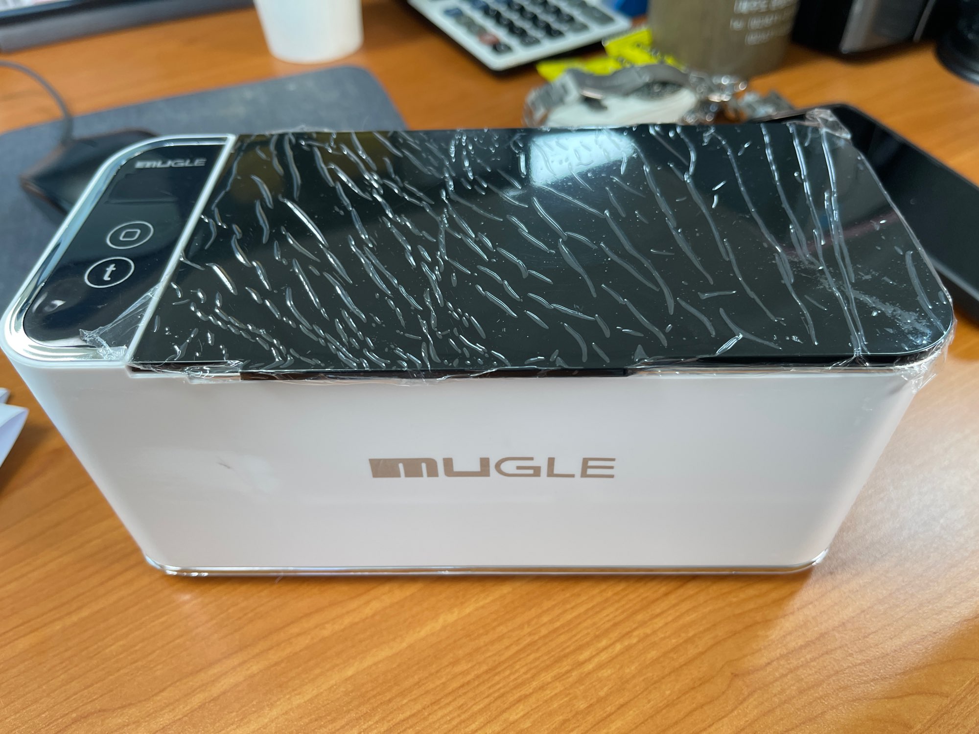 came well packaged, works well, easy to use, just two buttons, one to turn on, one to set time, just fill it up with water and let it work it's magic. I wear glasses and it was always a pain in my butt to clean them, also scratching them sometimes in the process, this little gadget helps out a lot