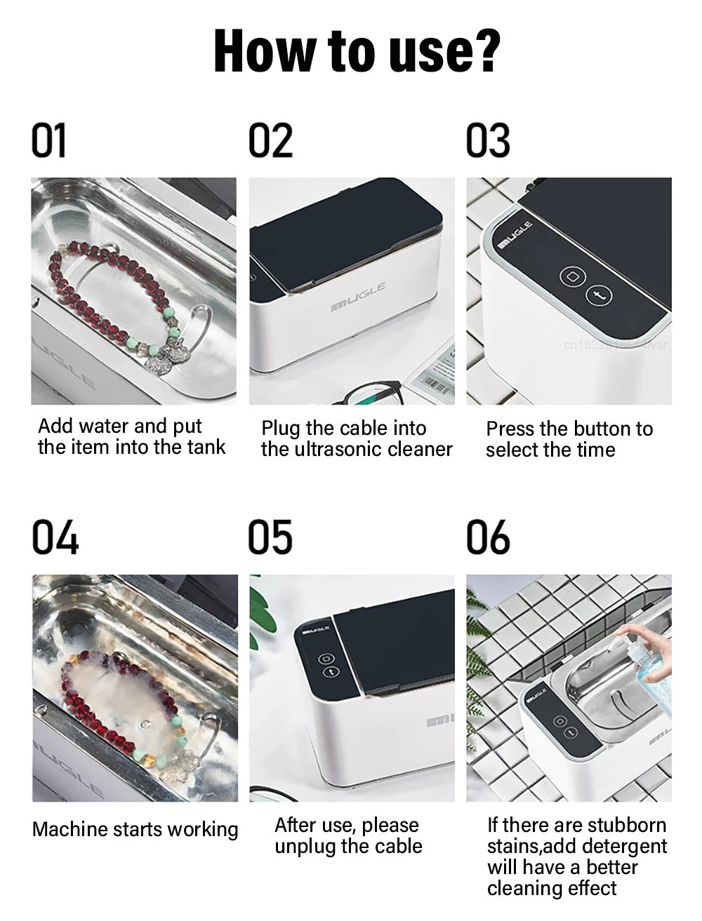 Using the Ultrasonic Jewelry Cleaner is simple and straightforward. Follow these steps for optimal results: