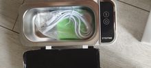 Great small ultrasonic cleaner. The device is a real ultrasonic cleaner and did the job as expected. Would buy it again if really needed.