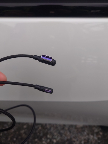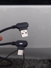 Good cable, does the job (e.g. For use in the car, where a standard connector might be an obstruction). Four stars instead of five because the cable is a bit too thin and the braiding feels flimsy.