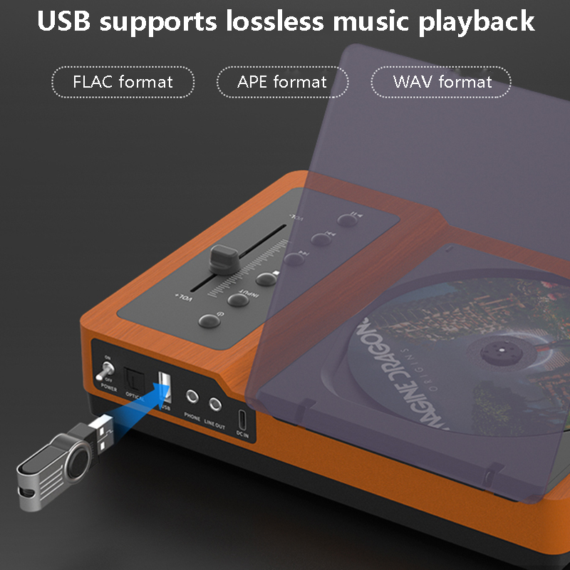 4: Fine craftsmanship, transmit warm sound, compared with plastic CD player thin, more stable and thick, reduce bad resonance.