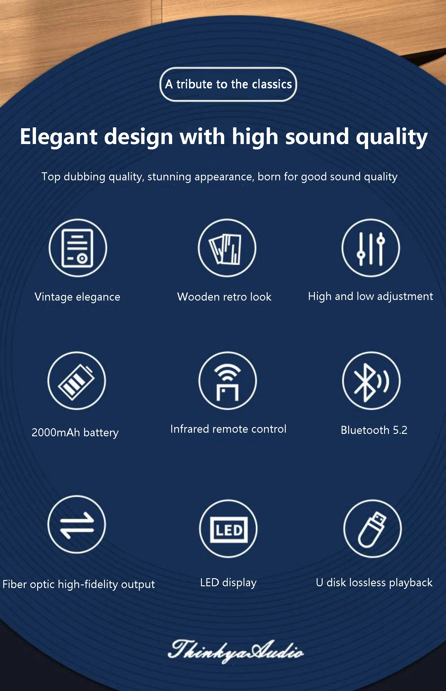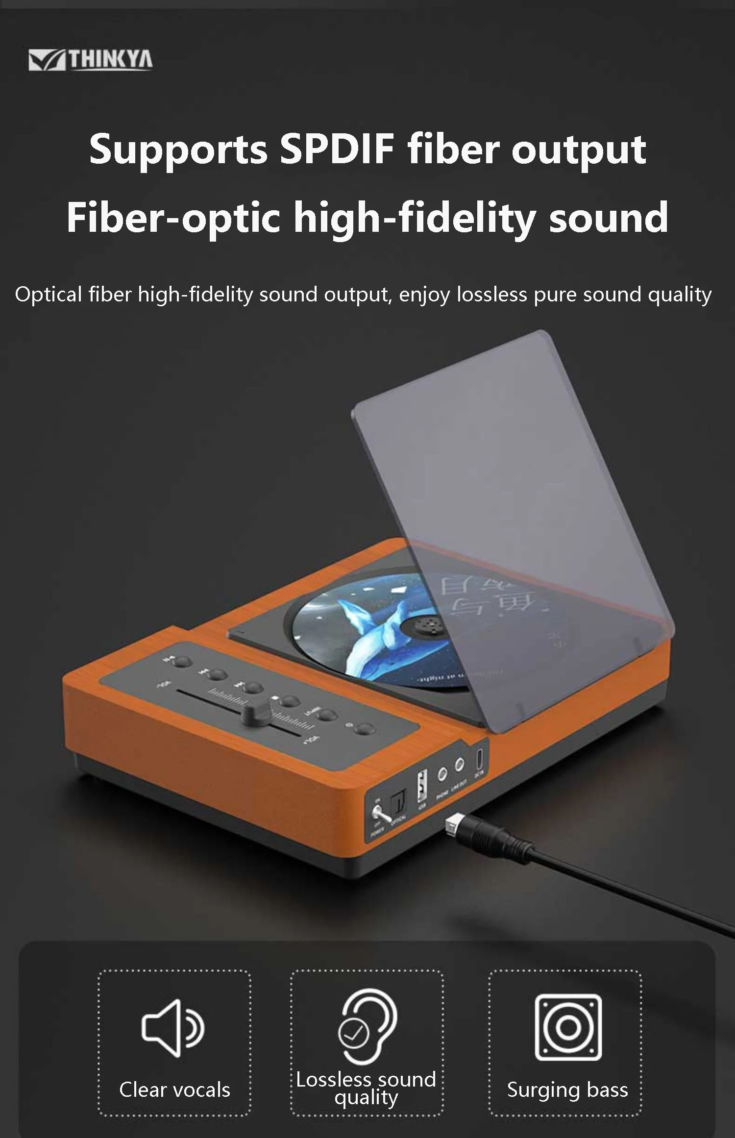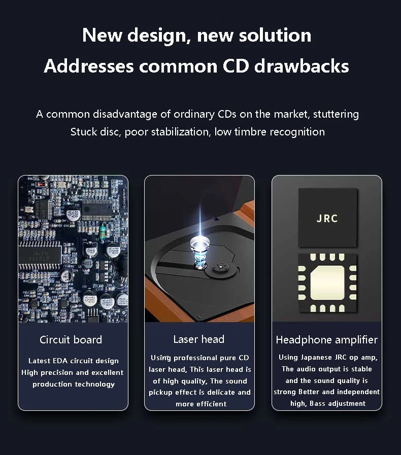 4: Fine craftsmanship, transmit warm sound, compared with plastic CD player thin, more stable and thick, reduce bad resonance.