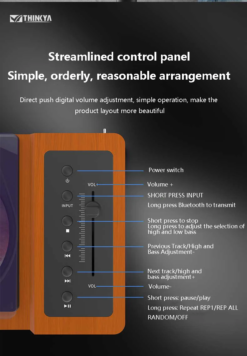 6: Direct push digital volume adjustment, simple operation, make the product layout more beautiful.