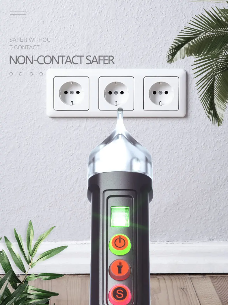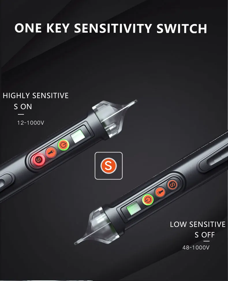 2. Voltage alert: If AC voltage is detected, the buzzer will beep and LED light will flash. The higher the AC voltage, the higher the frequency of beeps and flashes.