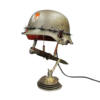 The war is over and leaves behind damage and pain that is hard to erase. Therefore, we manufacture this War relics lamp to commemorate and remember that terrible history. Each lamp is made of helmets, bayonets, and bullets from World War II. These helmets bear witness to that cruel history. The lamp has been professionally wired and has passed a UK PAT electrical safety test. The Helmet is a German M1942 and was recovered from the 1944 Narva battlefield in Estonia. The bayonet is a German K98 recovered from Berlin Lamp is fitted with a 3 mode flame effect LED bulb, there’s a video on the home page showing the flame effect. This is a very meaningful work of art. It’s the perfect gift for a military fan. Buy right now!