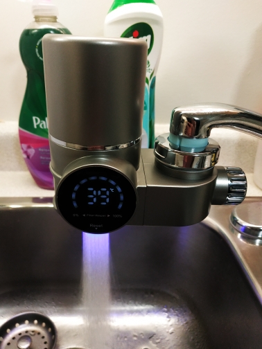 Forget about batteries and complicated setups. Our innovative hydro-powered system uses water flow to activate a purifying UV blue light and an informative LED display that shows filter life and water temperature in real time.