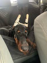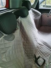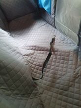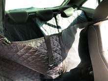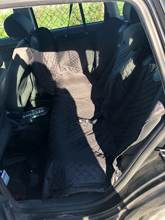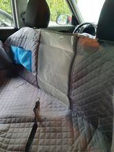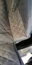 The goods arrived in 9 days. The size and color correspond to the description, everything is stitched well, the fastening of the belts to the case is reinforced, the zippers work. For placement on the rear seat of the Kia Soul in length and width, the cover fits perfectly, it is possible to adjust the belts. We specially bought such a cover so that its parts would fit on the doors. Previously, there was a simple hammock, on one of the trips the dog vomited just between the door and the seat, I had to do a dry cleaning of the cabin. In this case, in which case everything will remain inside, and the interior will remain clean.