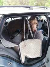 I'm delighted with this thing. Previously, the dog had to carry on his hands and be sure to wipe his paws every time before landing in the car. Now you can throw immediately on the back sofa without fear for the back row. It remains to accustom to lie, or then sitting and standing dog constantly falls when maneuvering in the City :) the carabiner for the coupling is flimkovat, I would like to