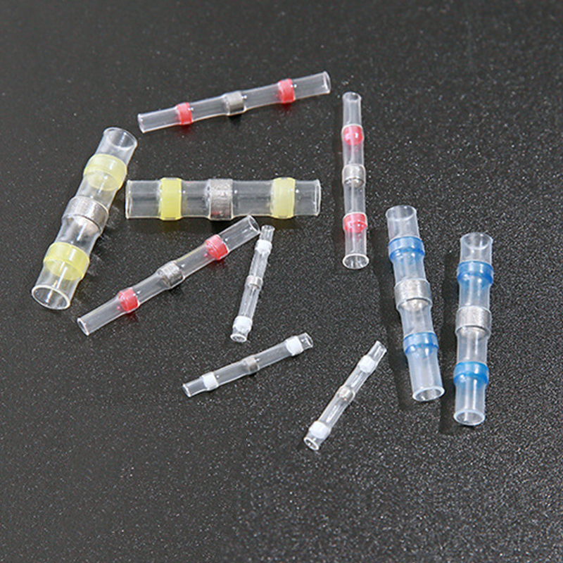 Polyolefin heat shrink butt connectors improved pullout strength, provides seal, strain relief, cable check, and insulation