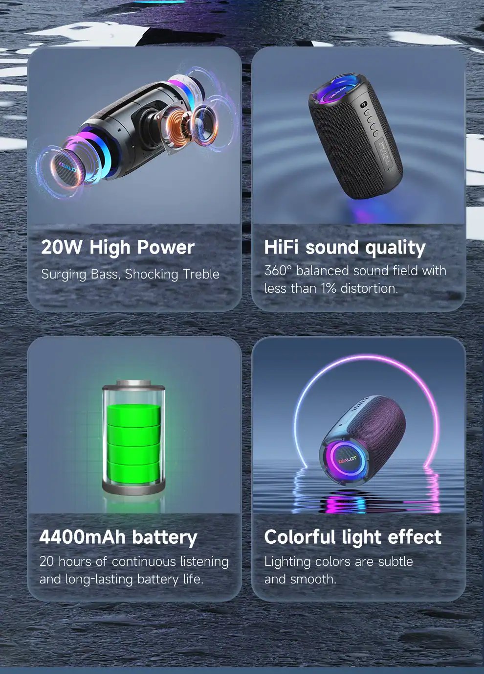 Connect 2 speakers together, they would play together at the same time!After the first connection,the subsequent connection of the two speakers bluetooth wireless will be connected automatically by themselves.Different models of Zealot wireless speakers with bluetooth can do dual pairing by each other. However, either of the two wifi bluetooth speakers portable wireless can be sold alone. One party speaker also plays great!