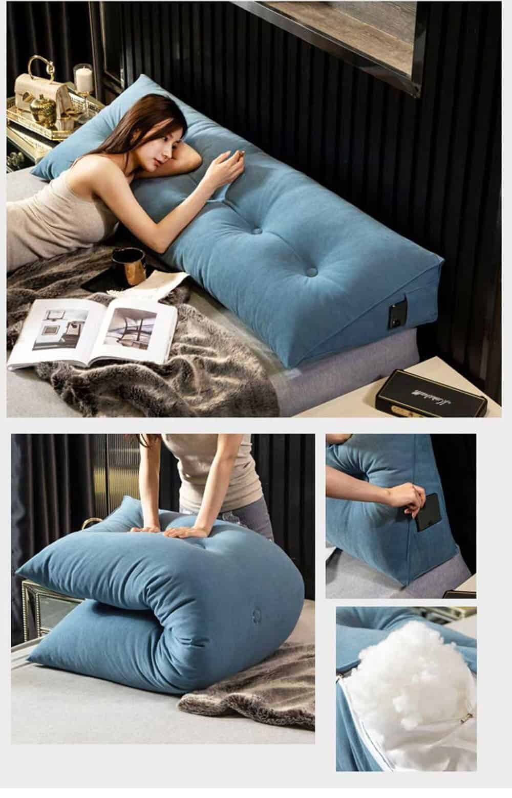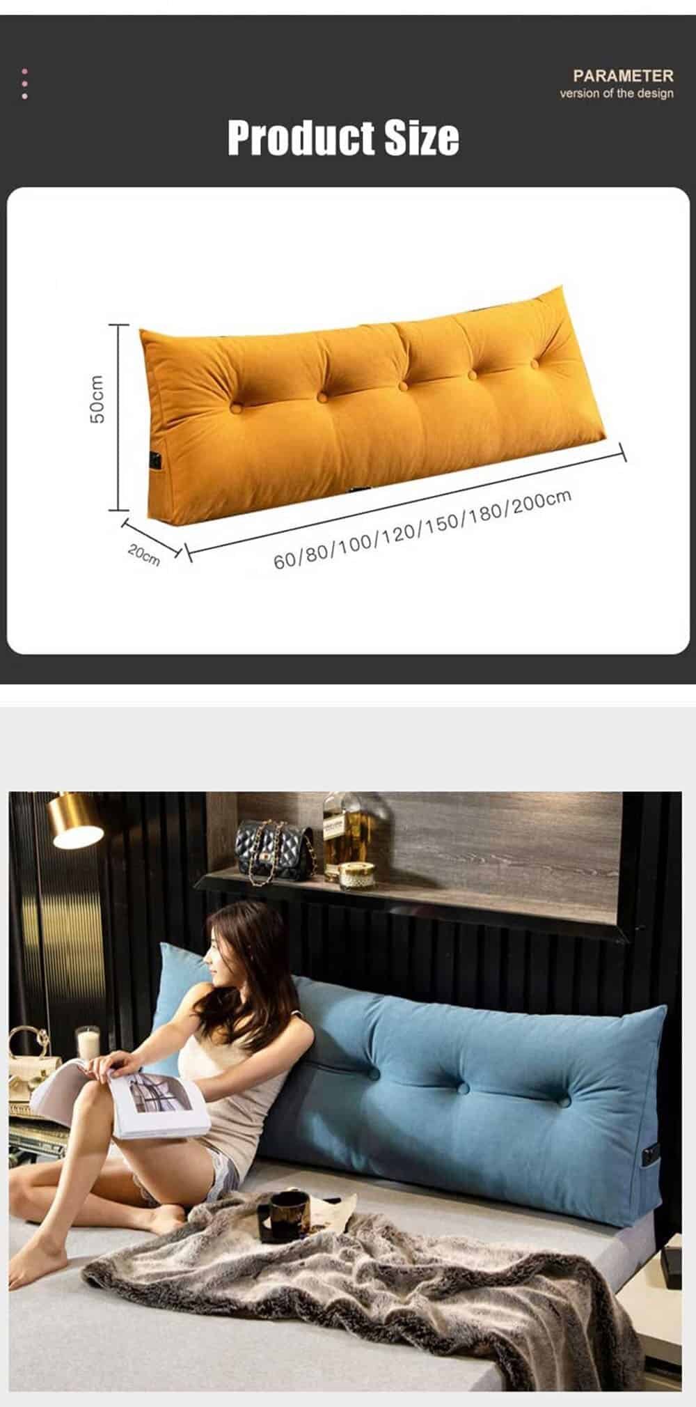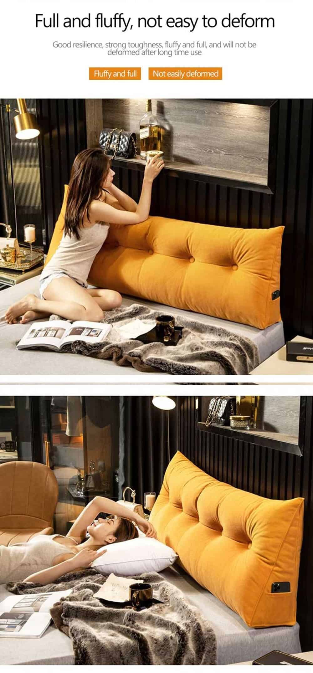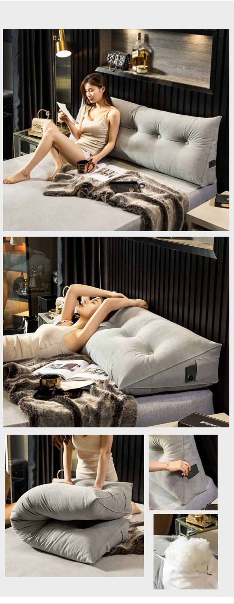 You love sitting in bed to read a book, but regular pillows can’t provide a balance between comfort and a healthy posture that doesn’t leave you with back pain the next day, right? Our wedge pillow headboard will solve this problem. This pillow helps you protect your waist, back, head, provides a comfortable environment when you want to lean against the headboard to read a book or use your phone. The product is made of high-quality cotton plush, the high-density PP cotton has good elasticity, providing softness while remaining just the right amount of firmness for you to lean on. It has a convenient zipper design, making it easy to peel off for washing. This is not only a convenient item but also adds a luxurious look to your bedroom. Get it now!