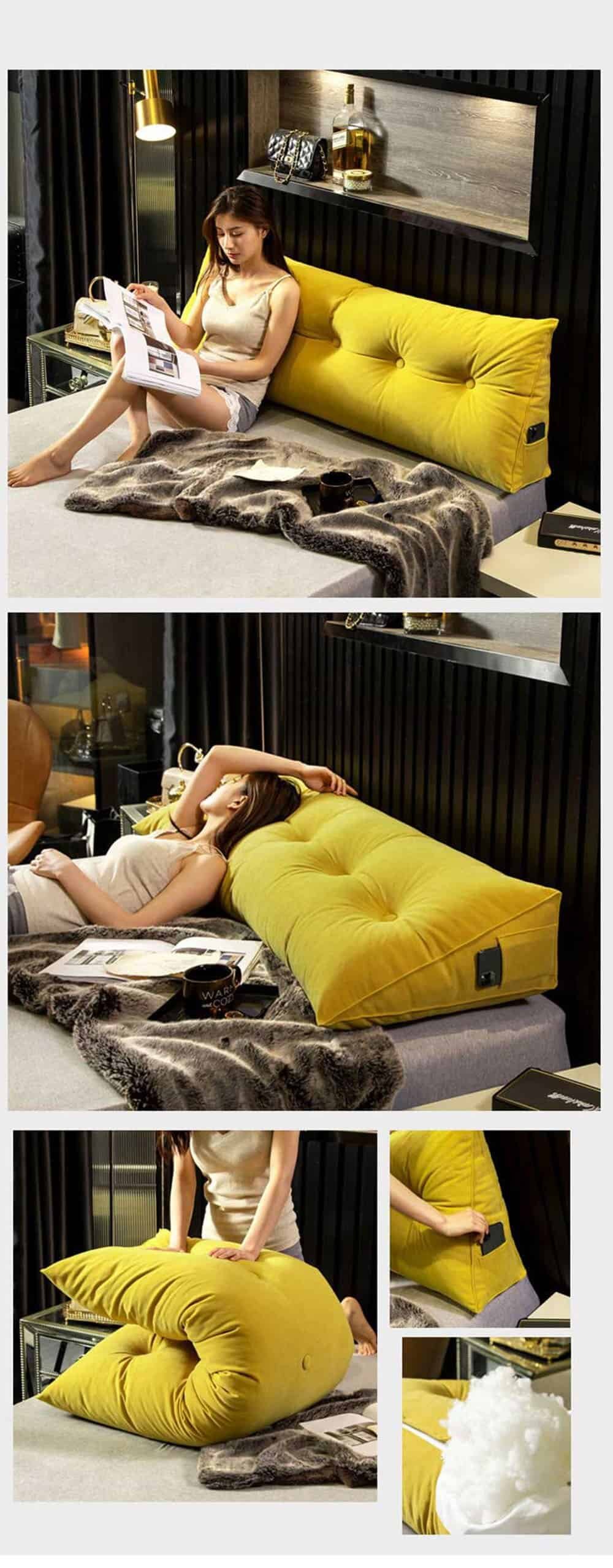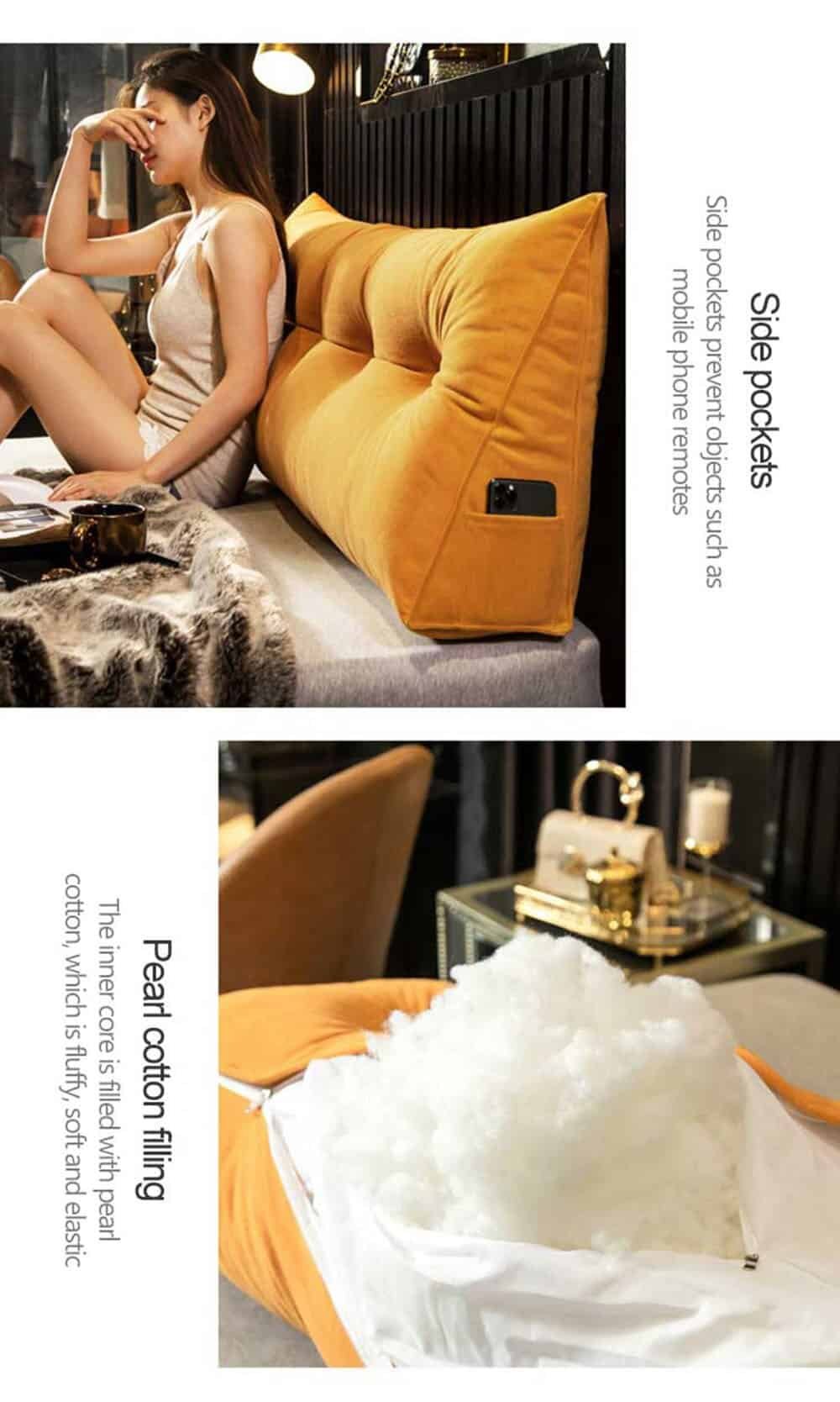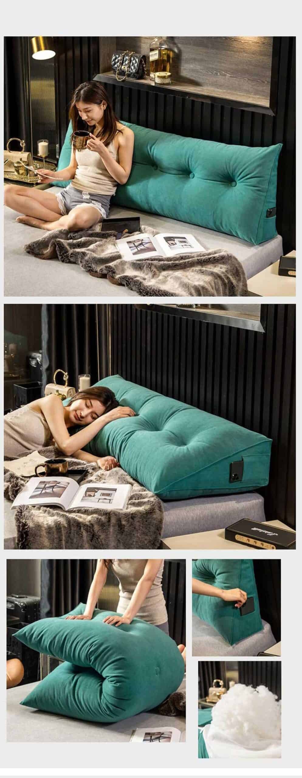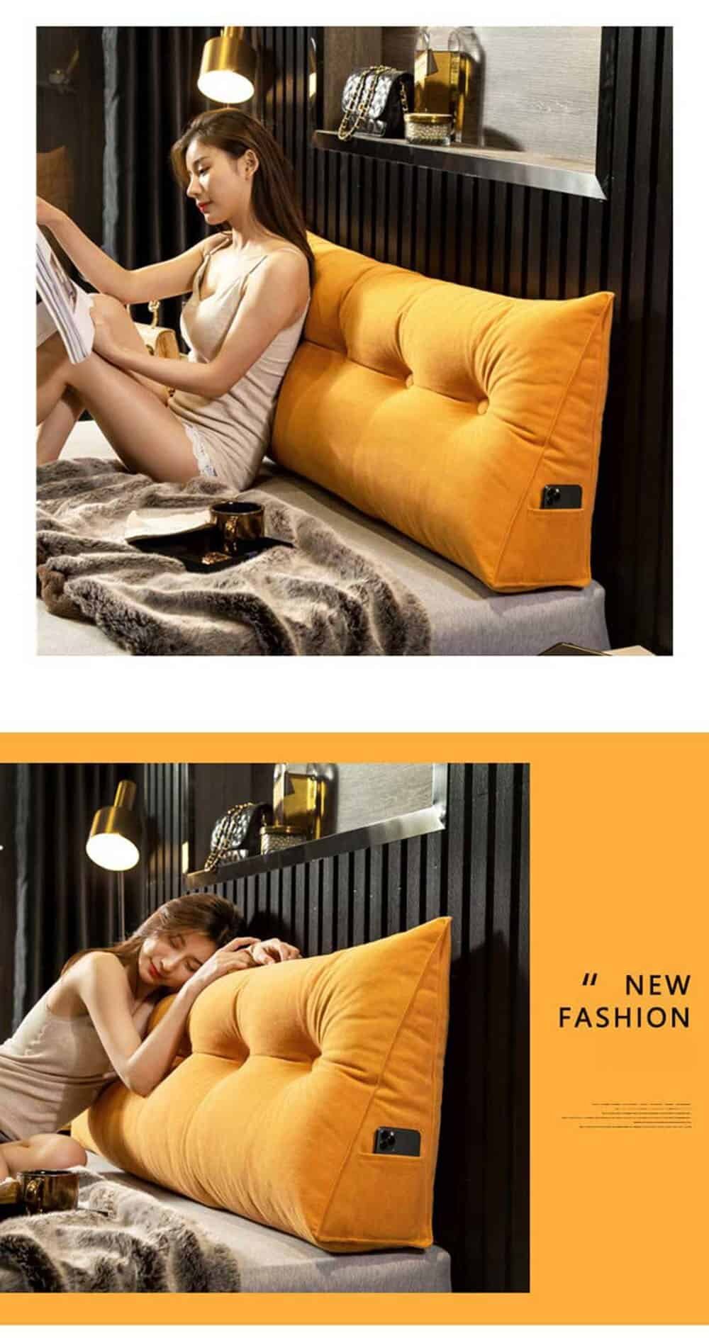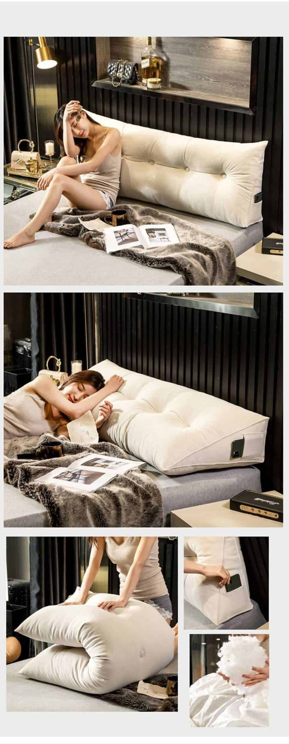 You love sitting in bed to read a book, but regular pillows can’t provide a balance between comfort and a healthy posture that doesn’t leave you with back pain the next day, right? Our wedge pillow headboard will solve this problem. This pillow helps you protect your waist, back, head, provides a comfortable environment when you want to lean against the headboard to read a book or use your phone. The product is made of high-quality cotton plush, the high-density PP cotton has good elasticity, providing softness while remaining just the right amount of firmness for you to lean on. It has a convenient zipper design, making it easy to peel off for washing. This is not only a convenient item but also adds a luxurious look to your bedroom. Get it now!
