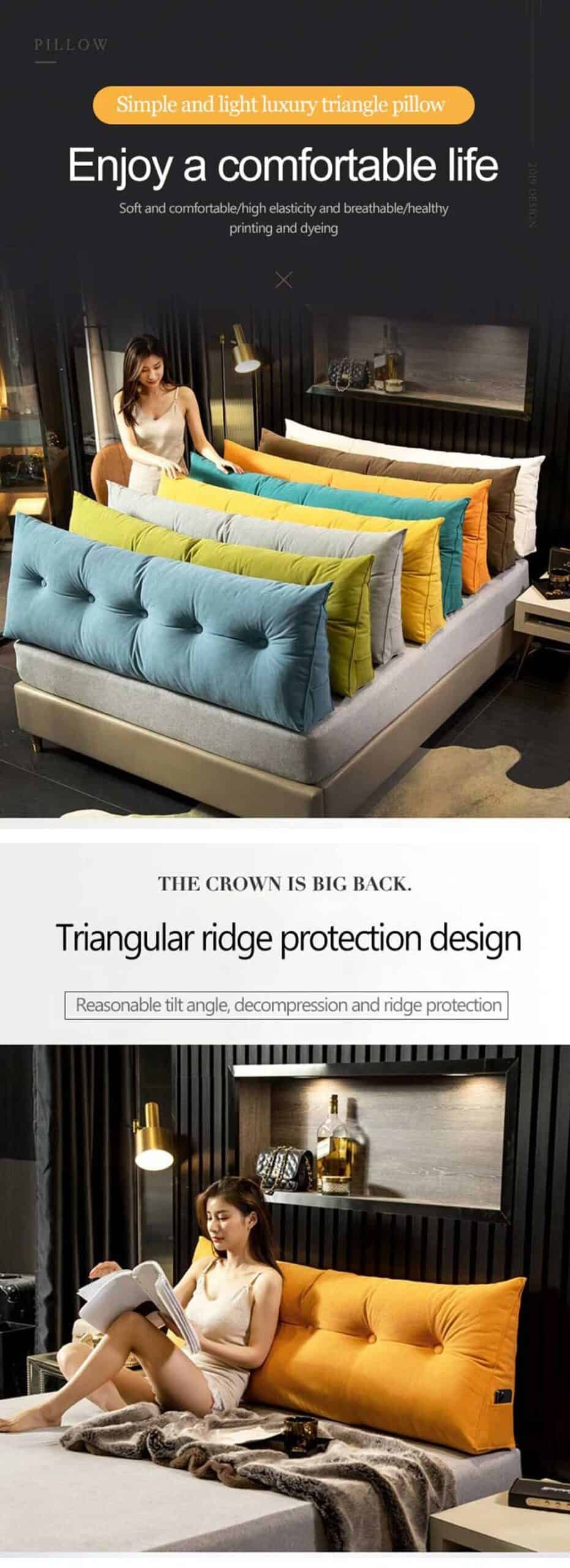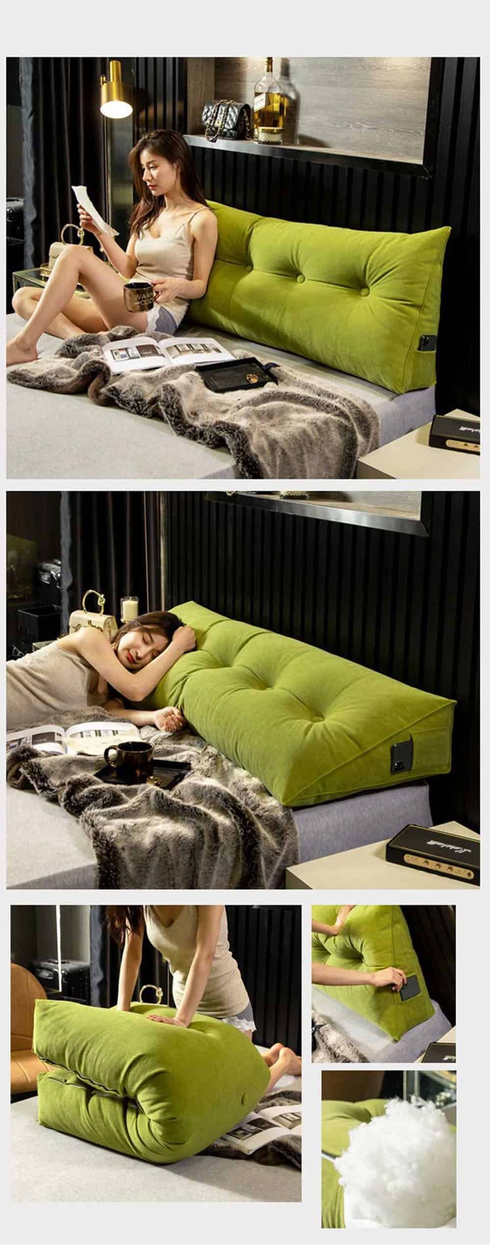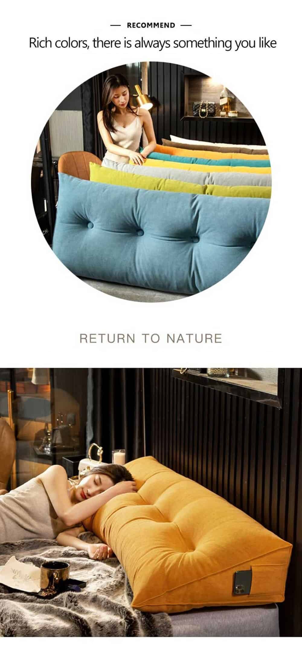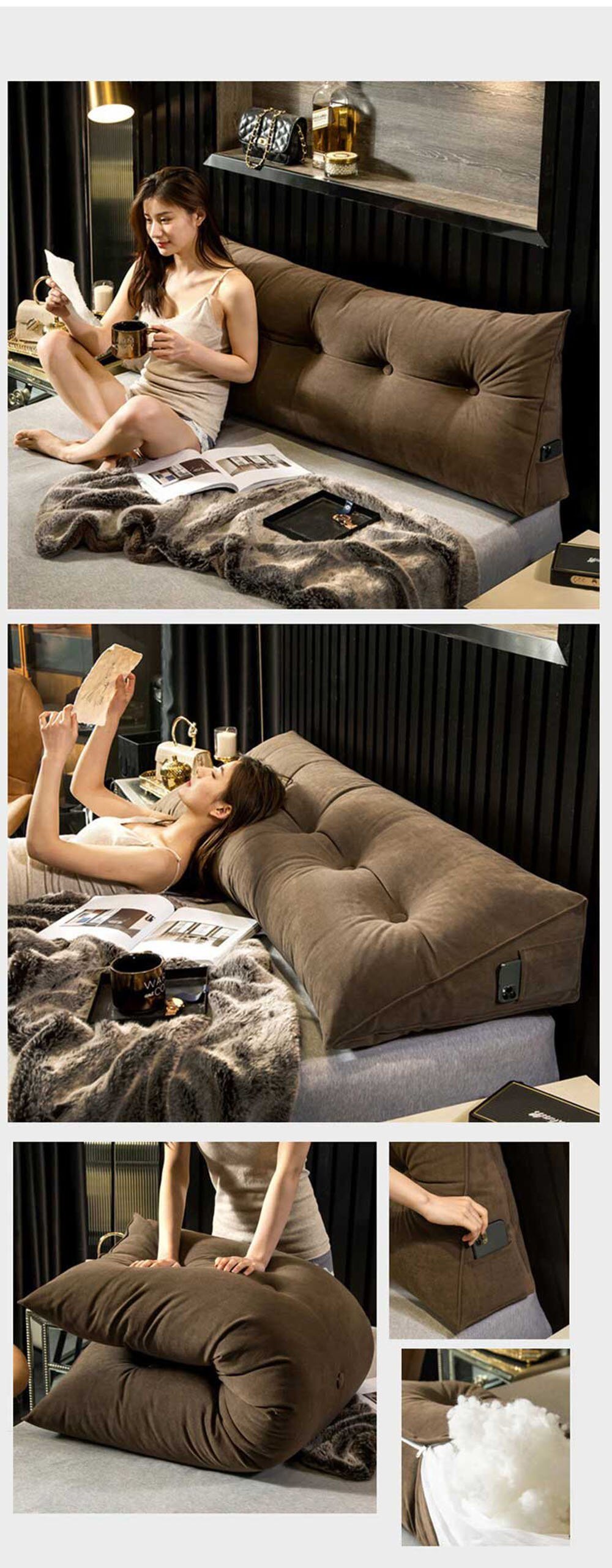 You love sitting in bed to read a book, but regular pillows can’t provide a balance between comfort and a healthy posture that doesn’t leave you with back pain the next day, right? Our wedge pillow headboard will solve this problem. This pillow helps you protect your waist, back, head, provides a comfortable environment when you want to lean against the headboard to read a book or use your phone. The product is made of high-quality cotton plush, the high-density PP cotton has good elasticity, providing softness while remaining just the right amount of firmness for you to lean on. It has a convenient zipper design, making it easy to peel off for washing. This is not only a convenient item but also adds a luxurious look to your bedroom. Get it now!