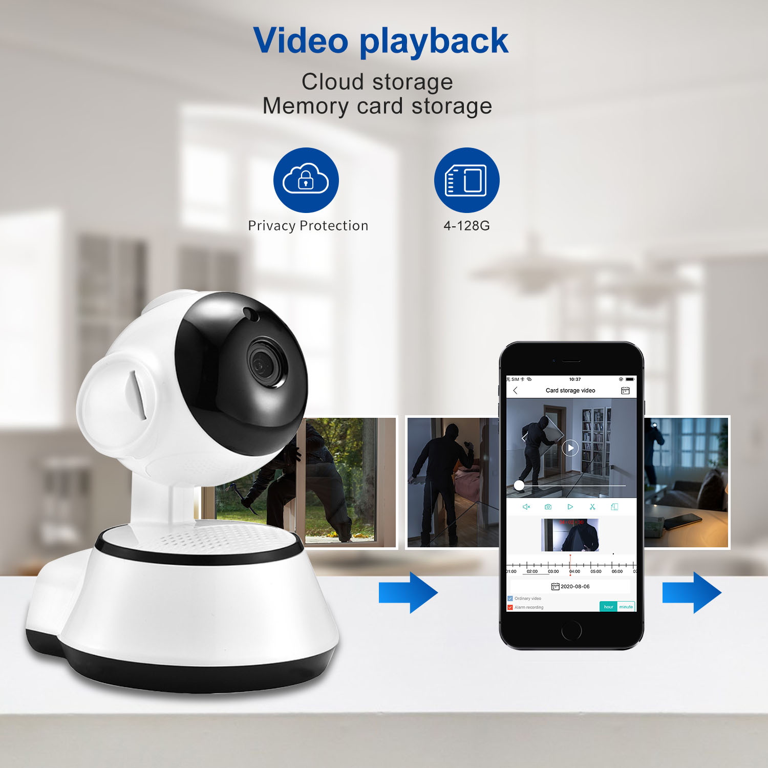 Do you ever worry that something goes wrong when you are not at home? If so, let our WiFi motion detector camera help you take care of your home. This camera connects to wifi and views live images on mobile with a resolution of at least 720p. The camera head is rotatable with 350°pan and 90°tilt, it will automatically track the body when somebody moves. Once the motion detection is triggered, a notification message will be sent to your phone. Moreover, it also supports two-way audio, press the intercom button on the APP, you can talk with someone on the other side. Place this camera in your home or outside the door to ensure the safety of your home. Order now!