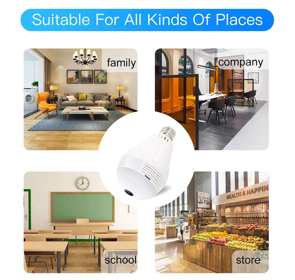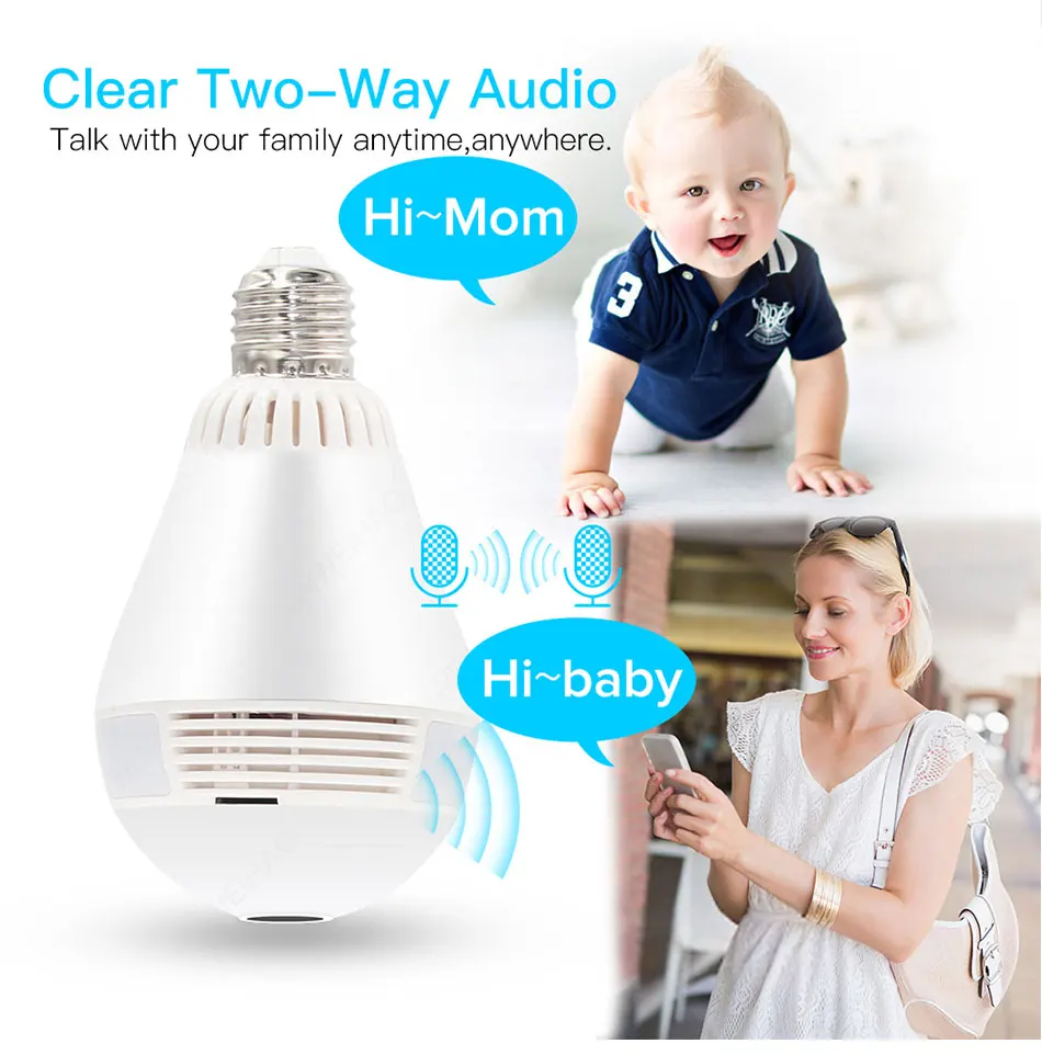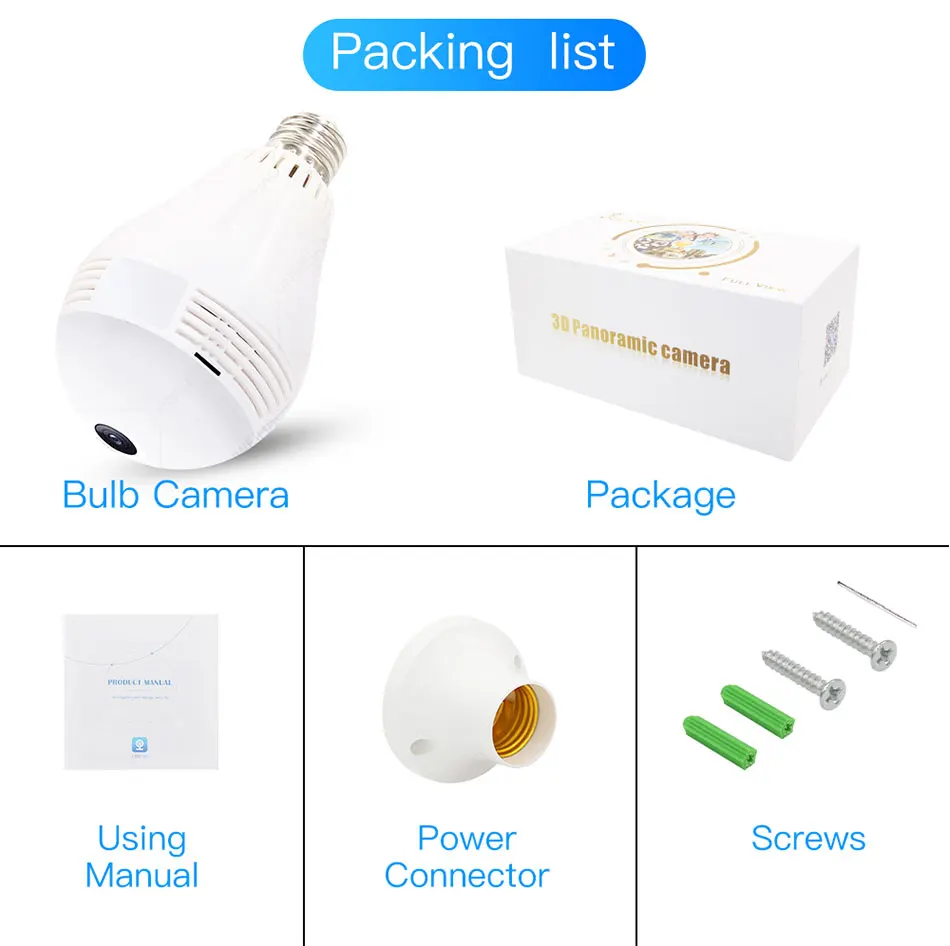 An Easy And Simple Solution To Installing A High Tech WiFi Enabled Security System. It’s As Easy As Screwing In A Light Bulb! Install this light bulb camera in your home for added security. It fits standard light bulb sockets so it’s hidden in plain sight. It records and transfers data to your mobile phone via WiFi and has a built-in microphone and speaker so you can communicate with your visitors.