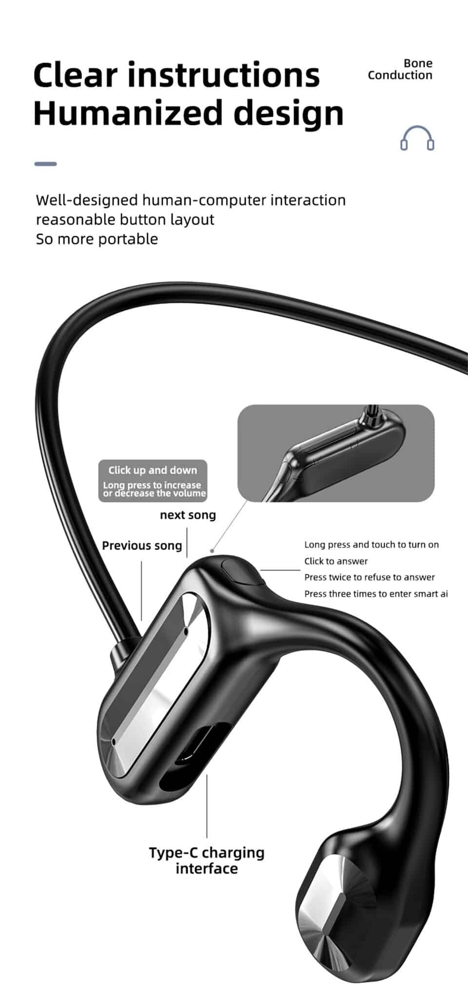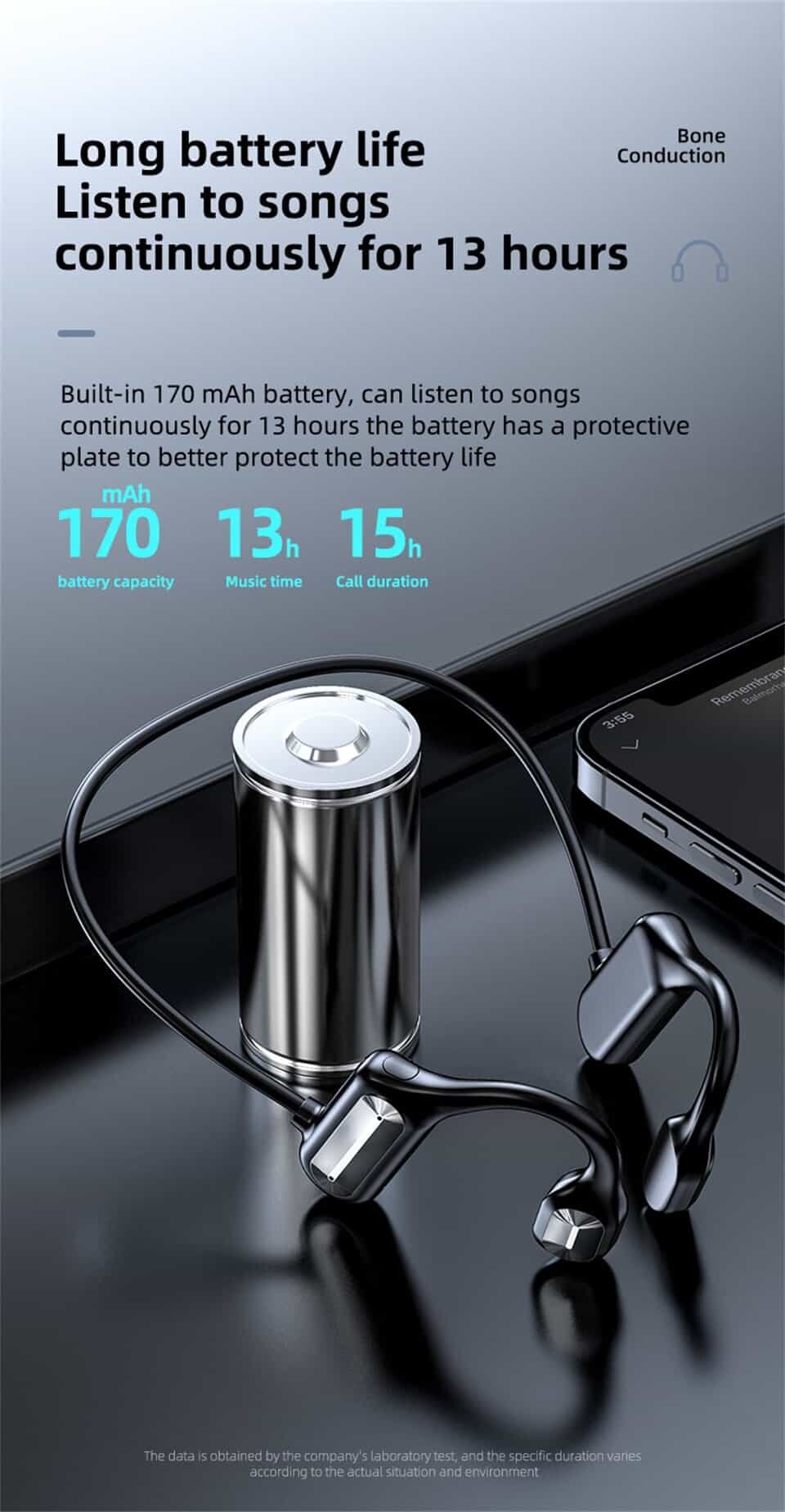 Enjoy hours of music, calls, movies and videos throughout the day with our wireless bone conduction headphones