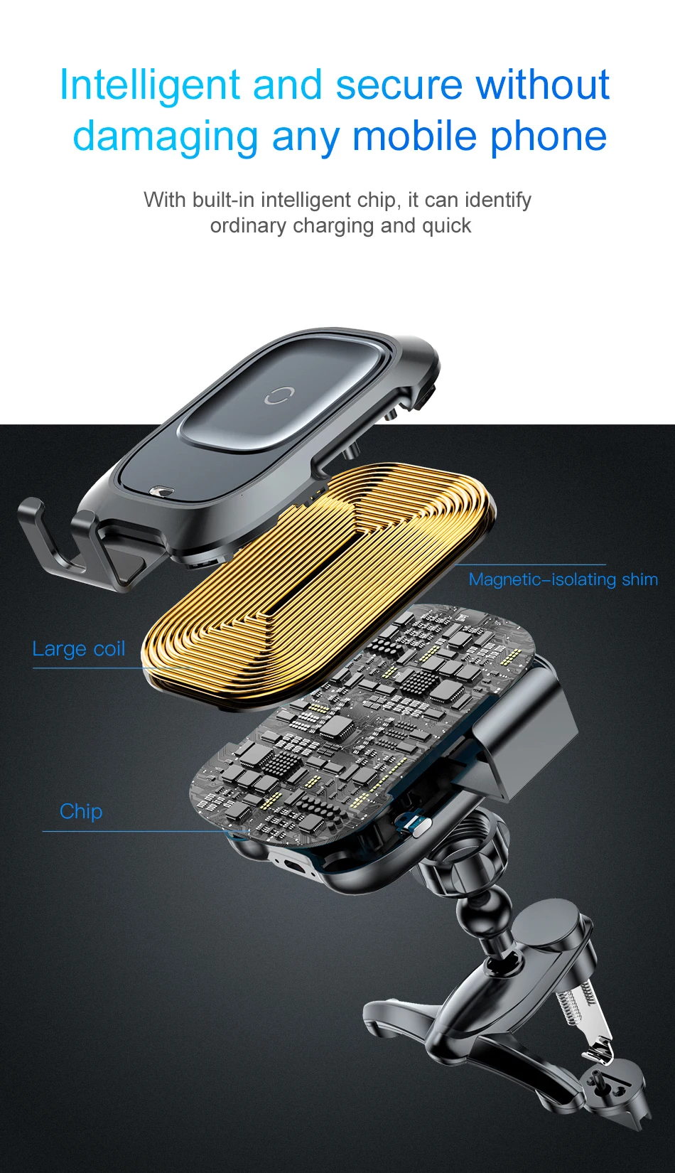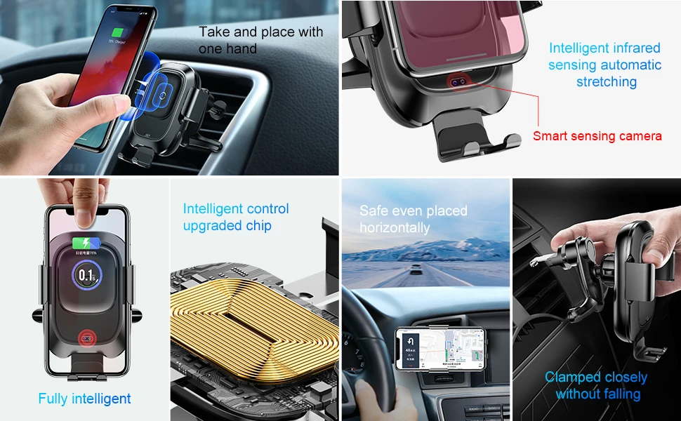 This Wireless Charger Phone Holder is the future! One-handed operation with infrared auto-sensing and charging features! The holder/charger can sense your phone and automatically grip it for guaranteed use even when driving! It’s so easy to set up with NO tools needed! The 360° rotation allows you the flexibility to watch/use your mobile device no matter where you are in the car. The perfect addition to any car!