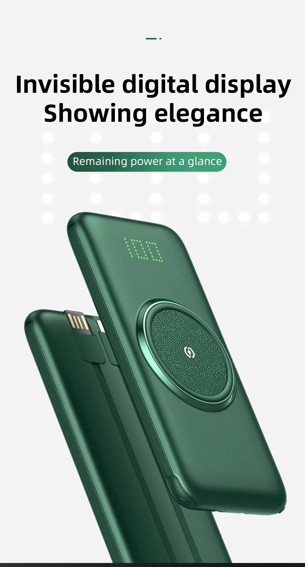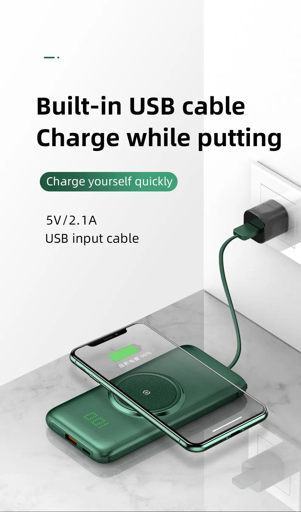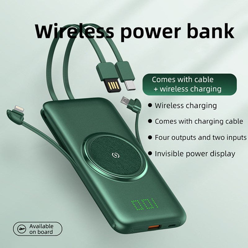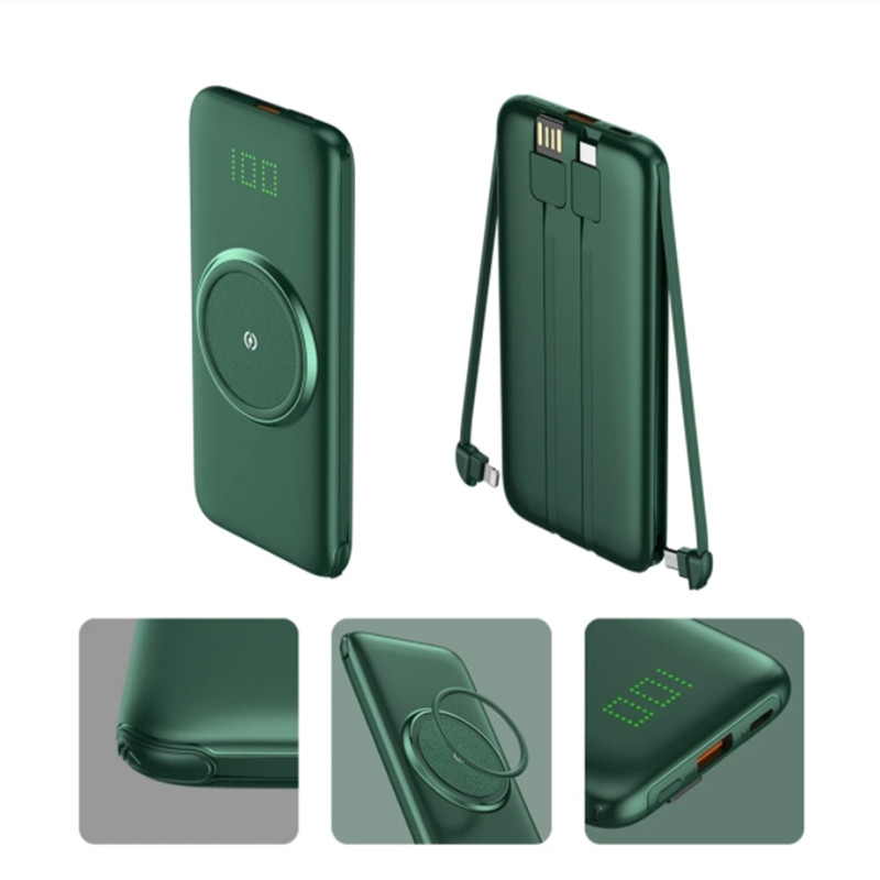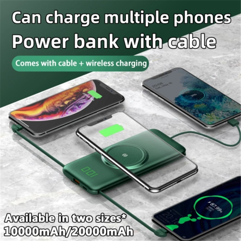 For a person who often uses the phone, a power bank is an item to always carry with you. Warmly introduce to you our Wireless charger power bank. This charger has an extra high capacity of 20000 mAh, so you can charge multiple devices like the phone, Bluetooth speakers, iPad… The luxurious design with a non-slip silicone ring and high-quality materials helps you don’t worry about the product accidentally falling. In addition to the wireless charger, it also has a built-in cable that allows you to charge multiple devices at the same time and charge them fast without the need for an external cable, very convenient and compact to carry out. Get it now!