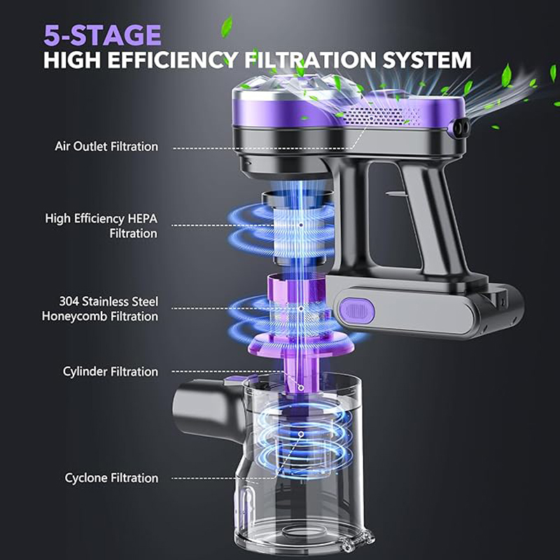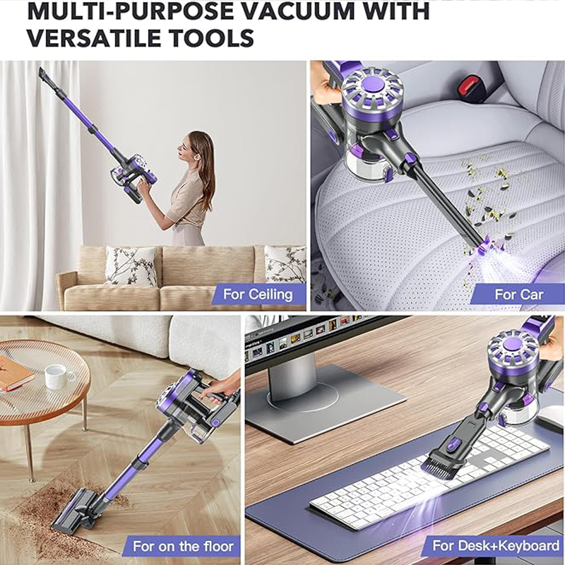 • Say goodbye to tangled cords and limited mobility. The cordless design allows you to move freely from room to room, reaching every corner of your home with ease. Whether you’re cleaning the living room, kitchen, or car, this vacuum cleaner provides the flexibility you need.