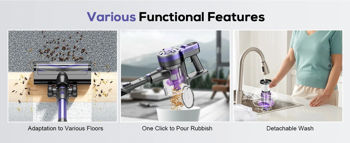 • The lightweight and portable design make it easy to carry and store. Whether you need a quick clean-up or a deep clean, this vacuum cleaner is always ready to go.