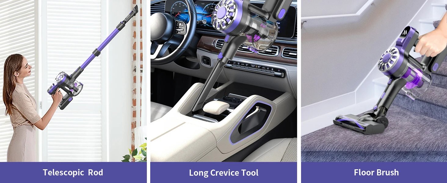 • Say goodbye to tangled cords and limited mobility. The cordless design allows you to move freely from room to room, reaching every corner of your home with ease. Whether you’re cleaning the living room, kitchen, or car, this vacuum cleaner provides the flexibility you need.
