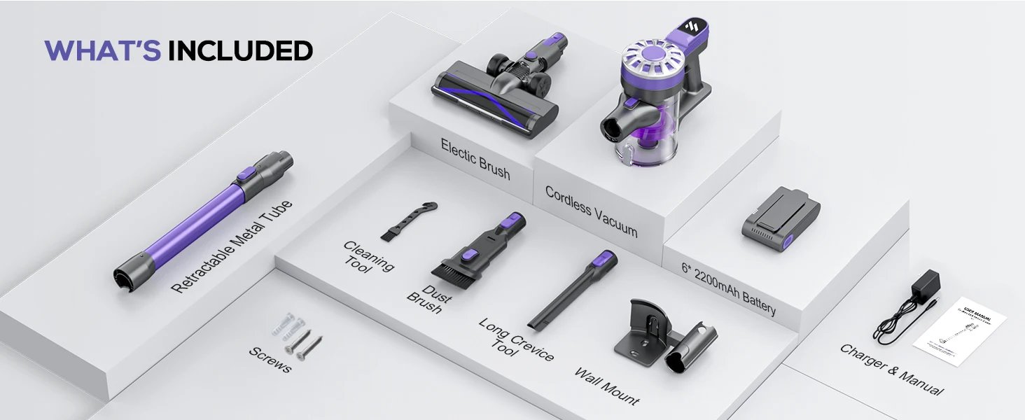 • The powerful suction and cordless design make cleaning quick and easy. You can effortlessly move from room to room, tackling dirt and debris with minimal effort.