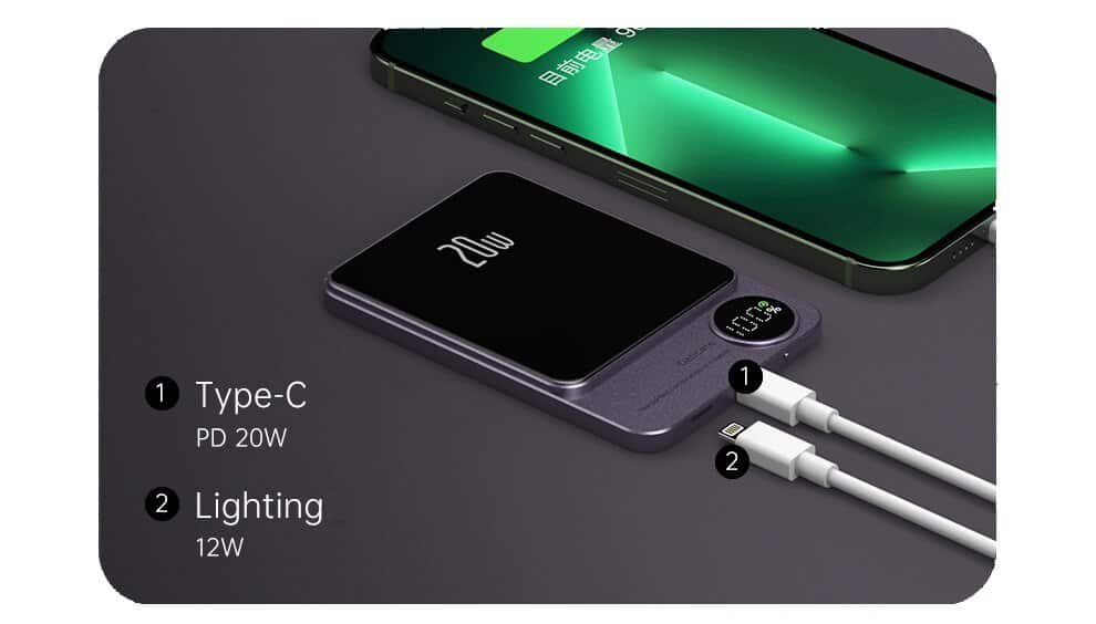 The magnetic power bank design is only 170 grams. it can be easily slipped into your pocket, purse or pocket. Whether you are at home or traveling outdoors, simply plug your phone into this mini portable charger.