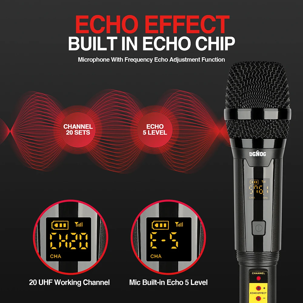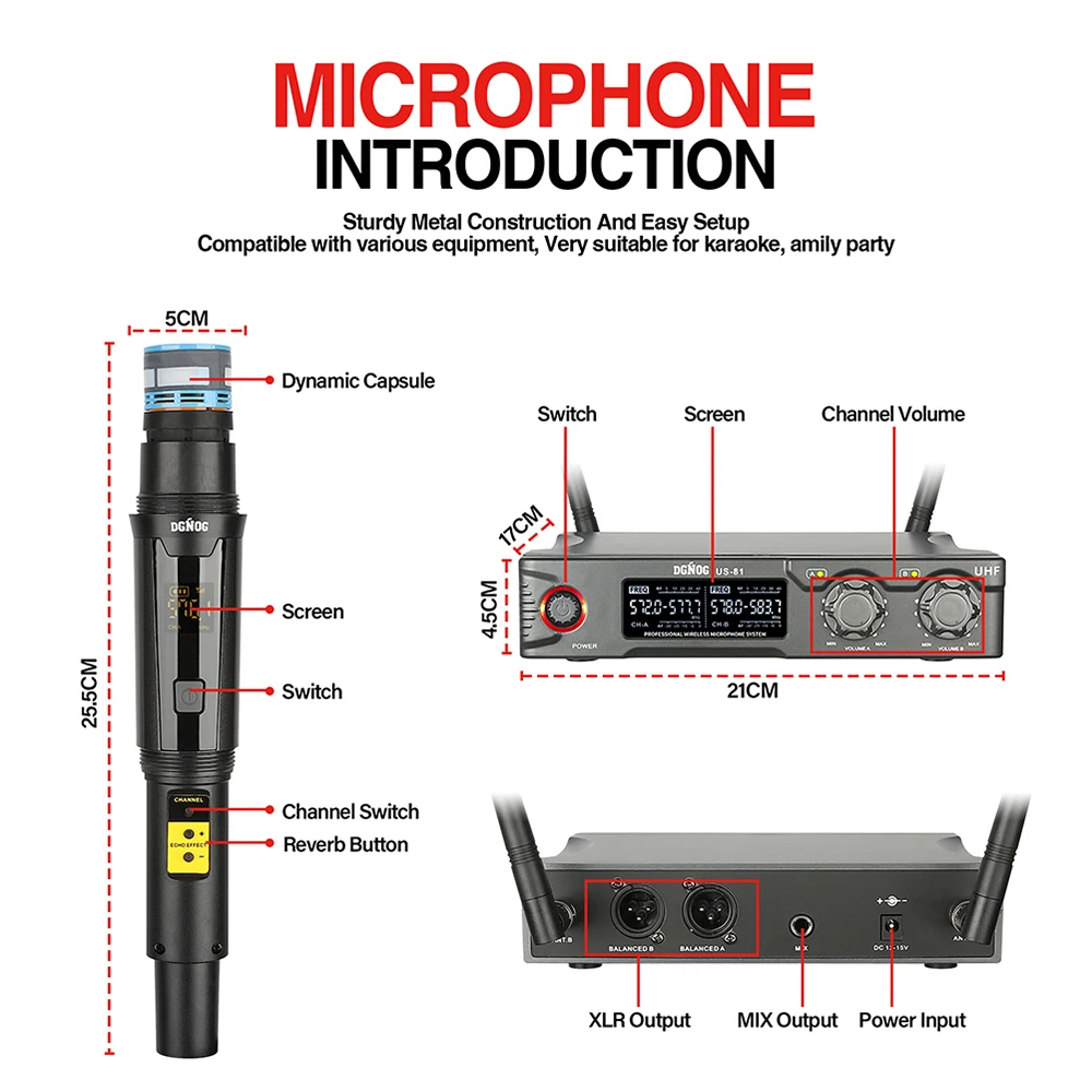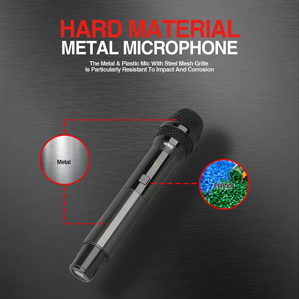 【LASTEST WIRELESS MICROPHONE】Adopt Professional-Level cardiac dynamic capsule. More outstanding, clear, pure, full sound, eliminate background noise and howling. Suitable for karaoke, family KTV, large parties, DJ, wedding, lecture, teaching use.
