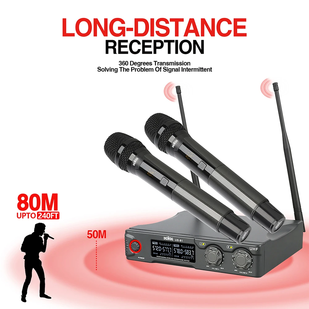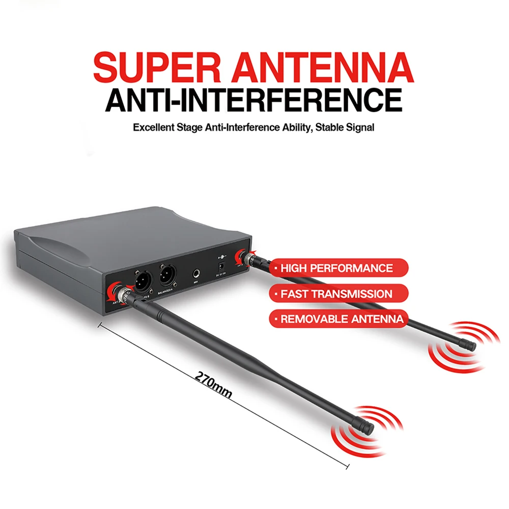【Great Signal Stability】Each UHF microphone has 20 adjustable frequencies for long distance transmission in open space (265 ft). A steady signal from the microphone will ensure your performance.