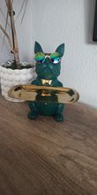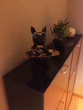 Bulldog just fire! Unrealistically cool. Delivery is fast (7-10 days to Moscow), packing is blown and reliable. The dog is very good quality, without chips, scratches and so on. The tray, as a separate part, and is glued with Velcro to the paws (they are included). Rainbow glasses also go separately, they can be removed)).